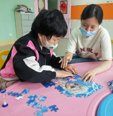 在和桂泫妹妹的相处中我们发现,她的不耐心,可能源于太珍惜来彩虹岛玩耍的时间,因此她想把每一个感兴趣的玩具都试一试。并且通过和她一起做游戏的过程中,我们发现妹妹有很好的观察能力,也非常会思考。与桂泫妹妹的相处时光,不仅让我们读懂了她“不耐心”背后对快乐的渴望,更见证了陪伴与鼓励的力量如何点亮一颗小小的心。那些在拼图碎片中迸发的灵感、完成作品时的雀跃笑容,都是成长路上珍贵的注脚。相信这份在彩虹岛收获的成就感与温暖,会化作她未来面对挑战时的勇气,也愿我们共同守护的探索热情与思维火花,始终照亮她前行的每一步。——志愿者 HXY
