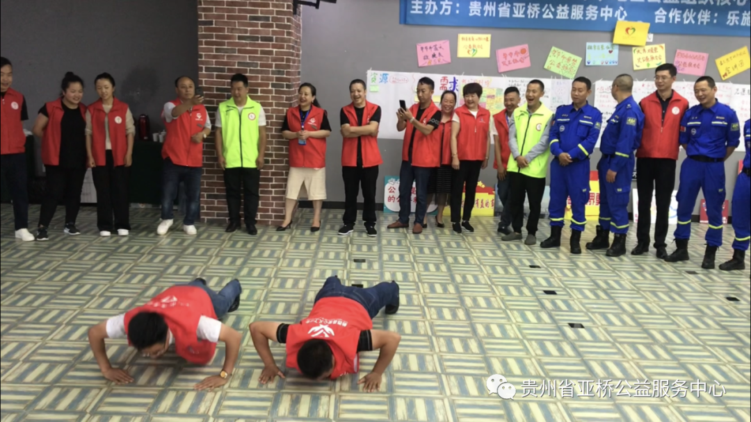 在看见志愿者个人之后,今天的学习主要带领大家一起看见机构,看见伙伴。我们以机构为单位进行分组,每个机构分别介绍自己的机构名称、使命或目标、服务内容以及口号和队歌。在机构分享过程中,现场一道亮丽的风景线——毕节市蓝天救援队为我们播放了团队五周年的视频。看到他们参与的大大小小的灾害救援,以及现场熟悉的面孔,会场不时响起阵阵掌声,每个人的敬佩之意溢于言表,伙伴们也表达了对于他们安全的担心,希望他们每次救援都能够平安归来。在分享的最后,毕节市义工协会带领大家以一首《爱的奉献》将会场的氛围推向了高潮!