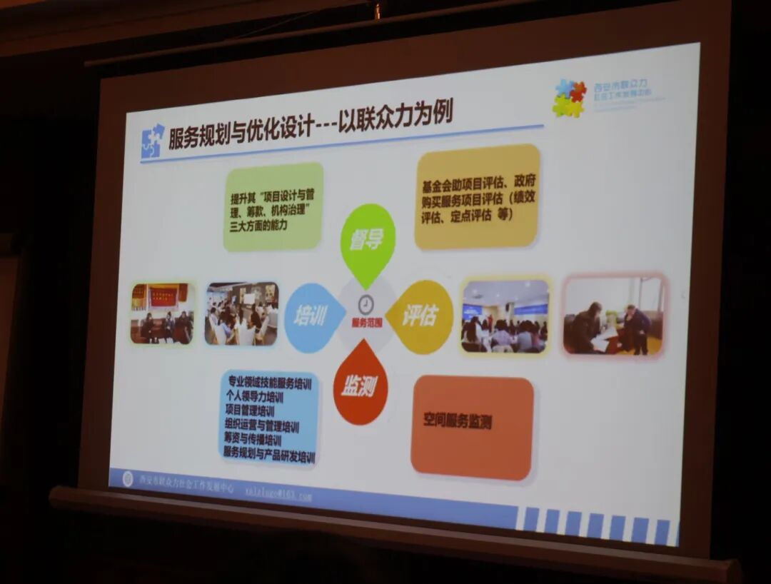 赵静老师以联众力为例,从组织架构设计、业务模块、社工服务、运营孵化、能力建设、监测评估等多个方面,带领我们深入了解联众力的发展过程,他们也面临着许多困境和挑战,但通过团队的共同努力和智慧,不断的探索和实践,实现了从活动到项目、从项目到产品、从产品到技术输出的跨越式发展。