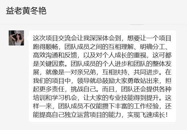 在这个分享过程中我们小伙伴们用心去听、思考、讨论、反馈,为项目献言建策,同时习得不同项目类型的经验。
