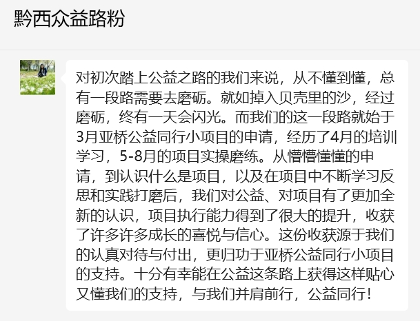 历经4个月项目实施,有的伙伴超预期的完成服务的指标,机构和个人都从中得到了极大的成长;也有的机构因为人员更换等特殊原因造成项目停滞,但每家机构都在项目的实施过程中都得到了一定的成长。在接下来的计划中,亚桥团队将同伙伴们一起推进项目的进展,携手成长,公益同行。