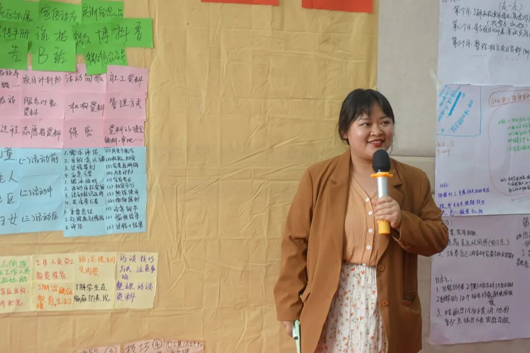 4、凯里市彩虹社会工作服务中心副总干事郑凯烽老师为同学们分享了《社会互动视角下的实习实践》;