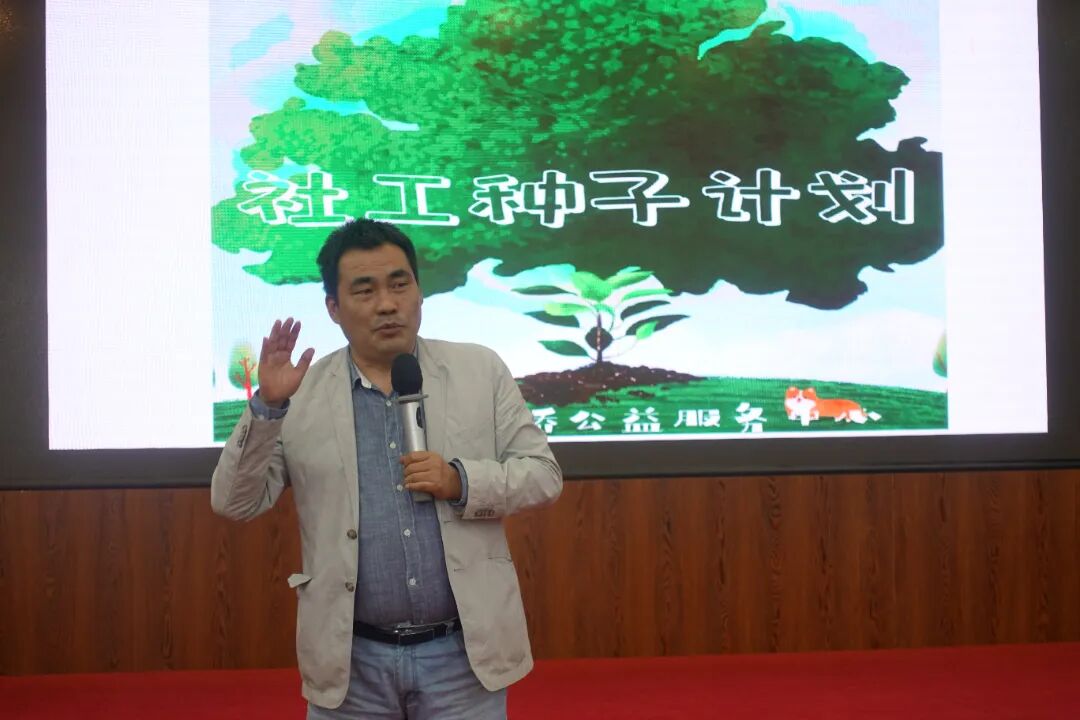 3、贵州省亚桥公益服务中心主任黎培忠老师为同学们分享了《亚桥对社工种子计划的初衷与期待》;
