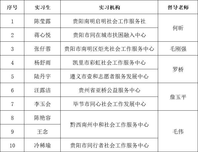 优秀实习生是经过机构初步提名,督导与亚桥项目方综合实习生实习期间表现共同评选而出,共10名优秀实习生。