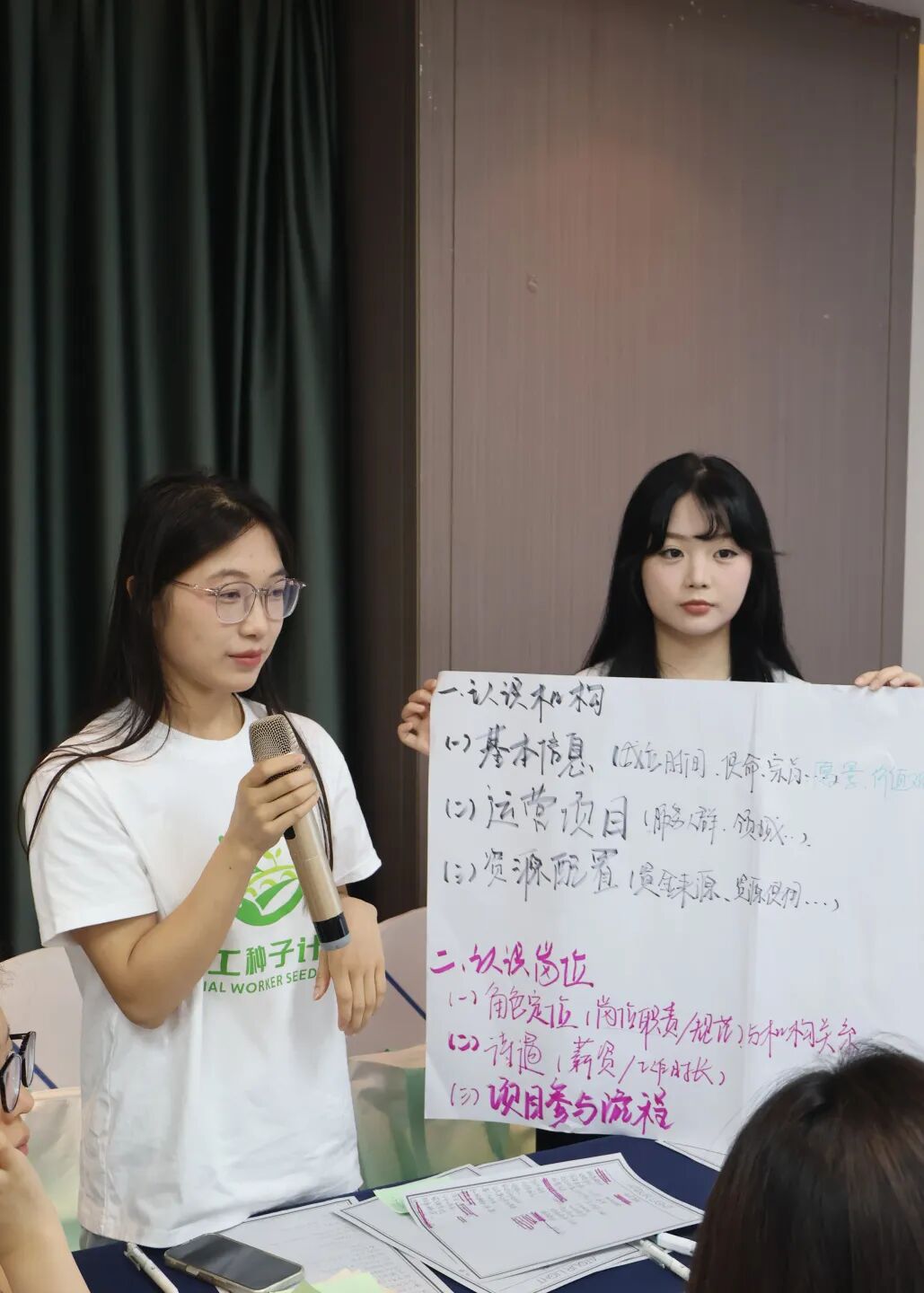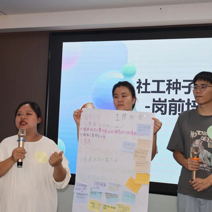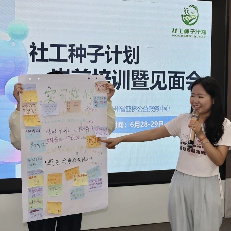 继5月的“社工人才培养论坛”后,社工种子计划通过三方面试,51名种子与16家机构达成双选,种子们将于7月初奔赴实习岗位。启程前夕,亚桥公益在贵阳为种子举办为期2天的岗前培训暨见面会。活动中,我们与种子共同探讨、分享、梳理,使种子们对实习画像逐步明晰。并通过促成实习生与督导、实习机构的提前见面,搭建起初步沟通桥梁,助力种子们以更好的面貌开启实习生活。
