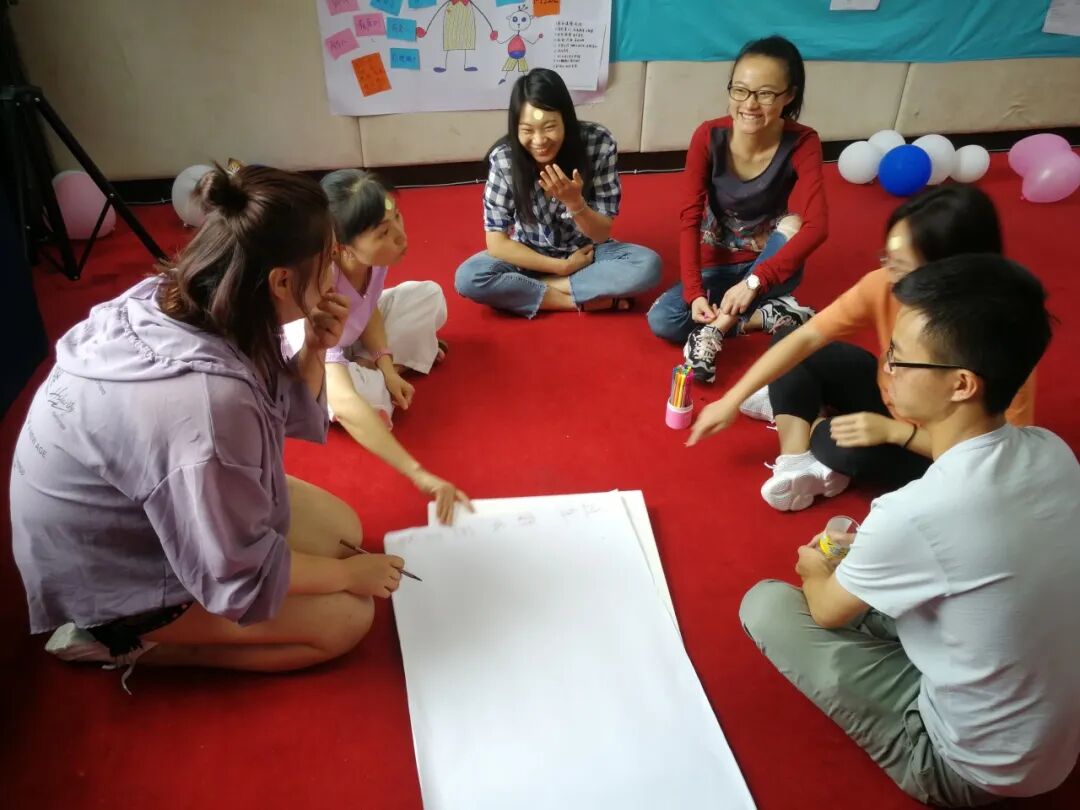 欢笑过后,大家小组内分享了“童年趣事”,和“从事儿童服务过程中和儿童的故事”。大组中大家也分享了“为什么会从事儿童服务工作?”,最后大家分别抽取了彩虹卡,分享自己的感受。