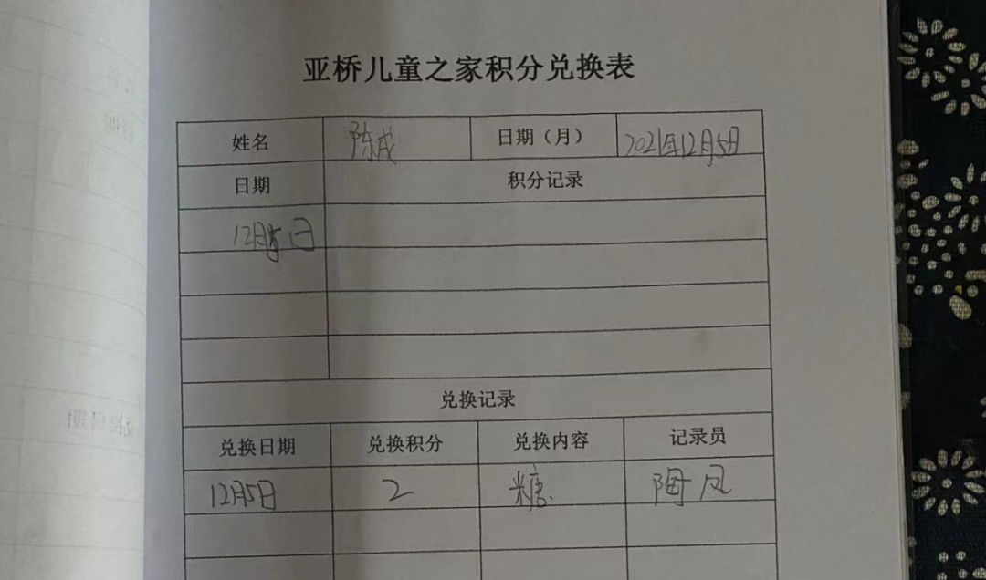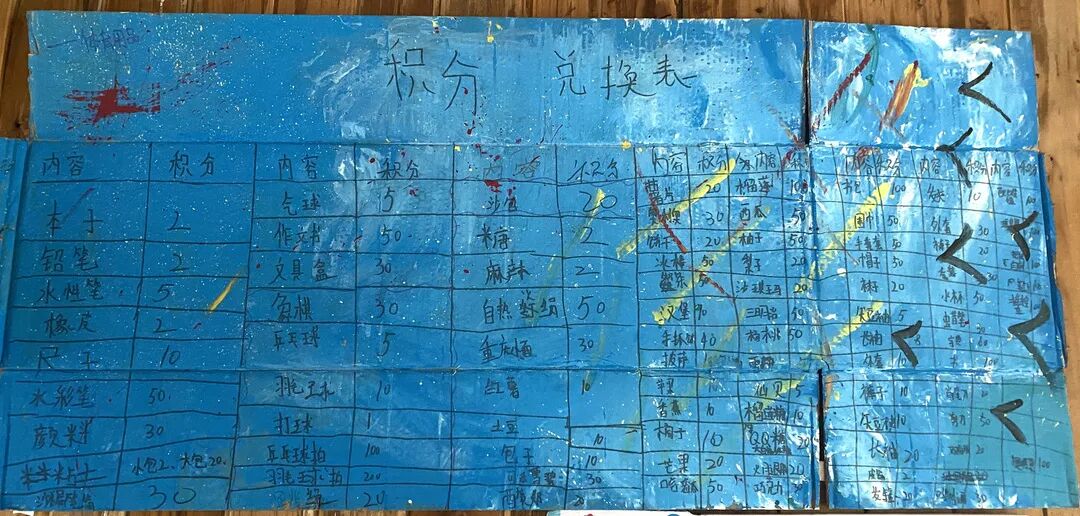 每天活动结束后,我们将对一整天的活动参与情况进行回顾,并及时更新积分数值,儿童日常兑换物品,由小当家进行记录和管理。每月月底我们将完成当月的积分兑换并清零。