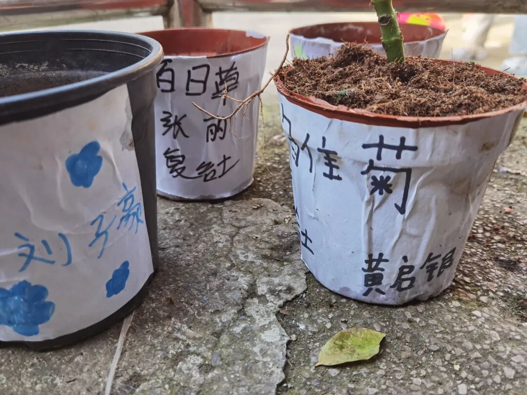 在完成分组后我们向每个小组发出挑战,有3种土壤进行选择——树林土、营养土和淤泥土,在种花的同时探究和记录哪一种土壤更适宜花种的生长。