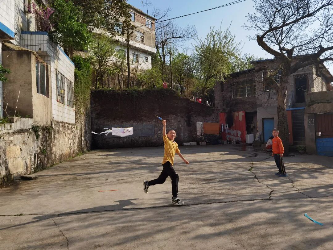 完成风筝制作后,小朋友们迫不及待跑出去试飞,也不知道是人放风筝,还是风筝放人,一个个满操场的跑个不停。