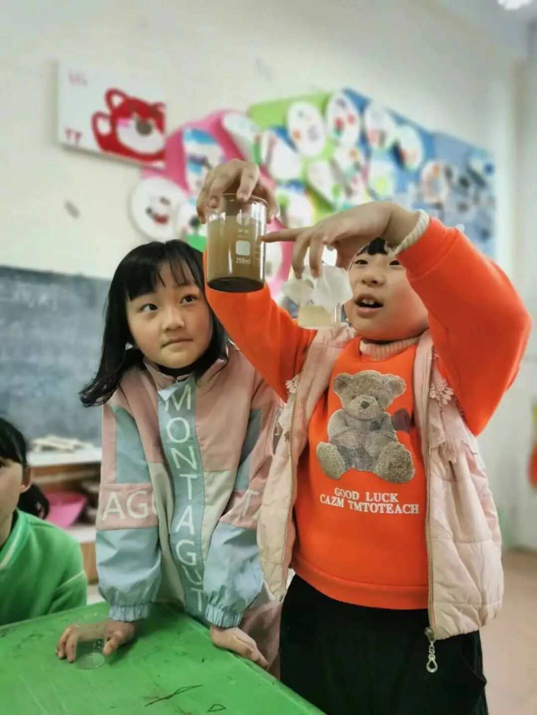 通过亲自实验,小朋友们了解了日常生活中过滤污水的方法。还脑洞大开探讨了污水过滤后的用处——拖地、浇花、冲厕所,不仅可以节约资源,还能够保护我们的环境。