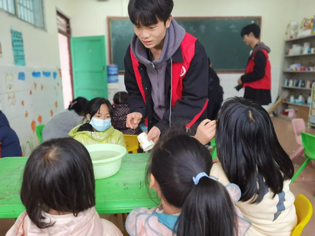 本周,电子科技学院的哥哥姐姐们为小朋友们带来了手工课和科学实验课——用纸杯制作五彩缤纷的太阳花,炽热而美好。一张纸巾接触水会打湿,放在杯子里为什么就不会打湿呢?通过物理小实验,我们一起学习了气压的影响。