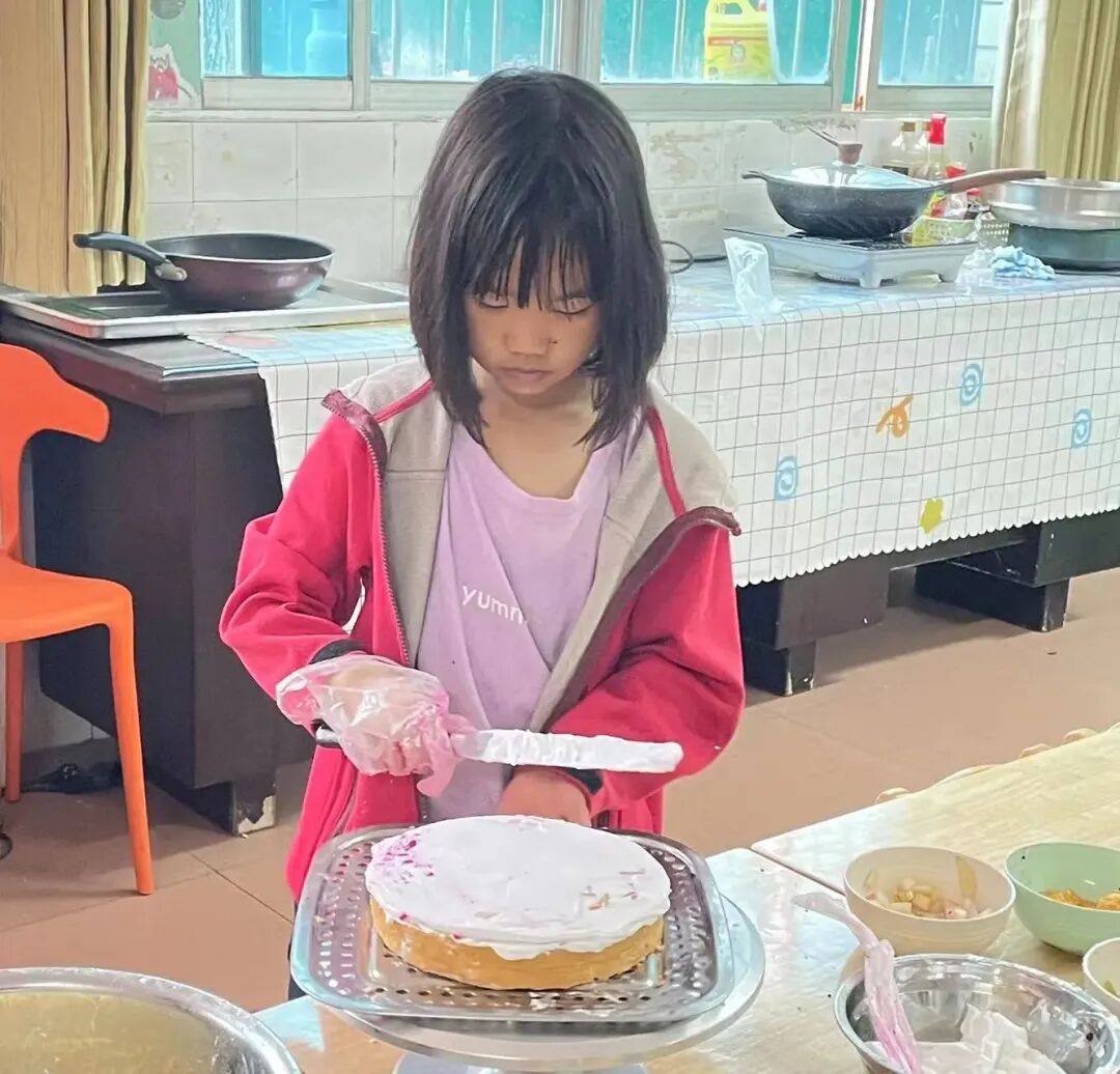 儿童之家每两月都会为小朋友们过生日,与以往不同的是,这次所有的生日蛋糕都是儿童之家的老师和小朋友们一起亲手制作的。制作蛋糕胚、制作奶油到蛋糕装饰,每一个步骤大家都十分认真,小朋友们说这次的蛋糕比以往的都好吃!