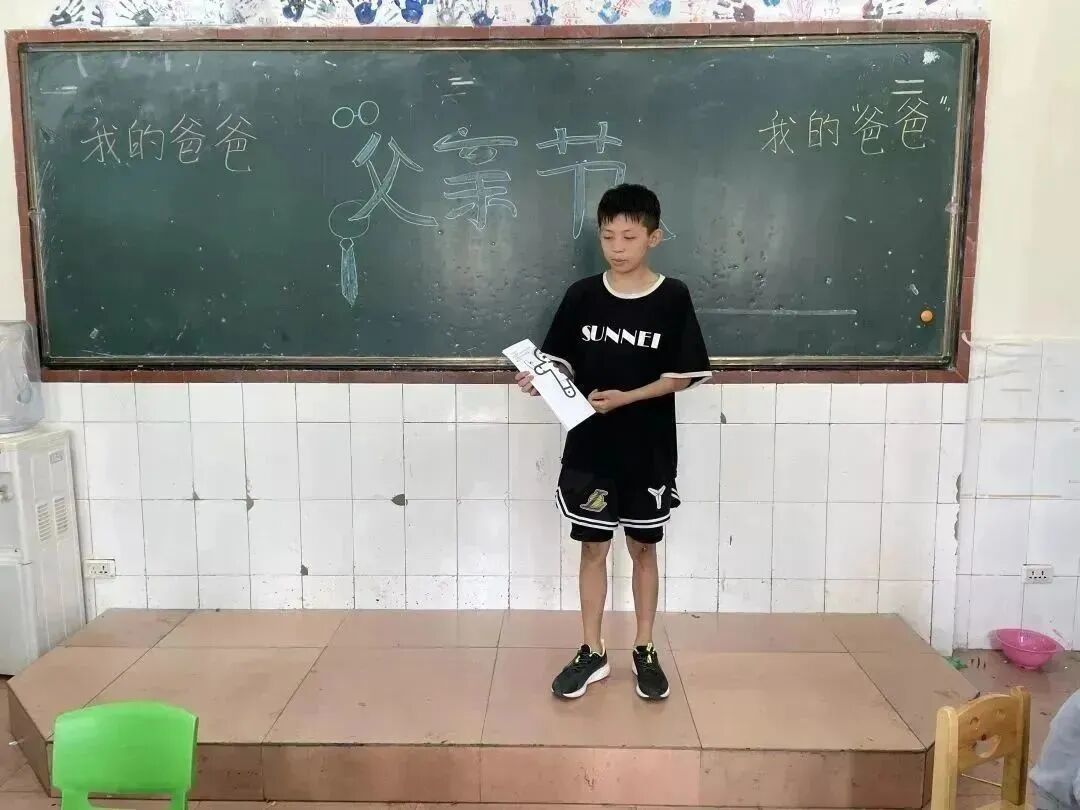 “我的爸爸对我很严厉,但是对弟弟妹妹很有耐心,喜欢出去玩,不关心我们;我希望他对我们多点关心,也对我多点耐心。”