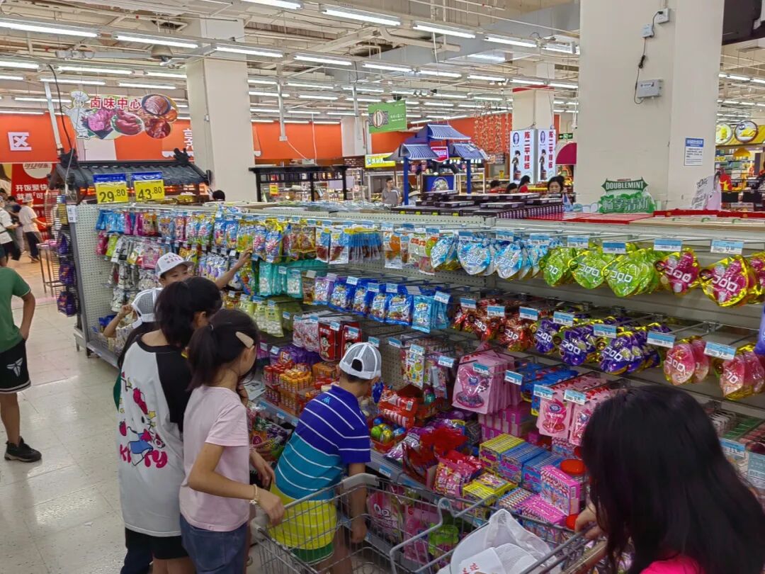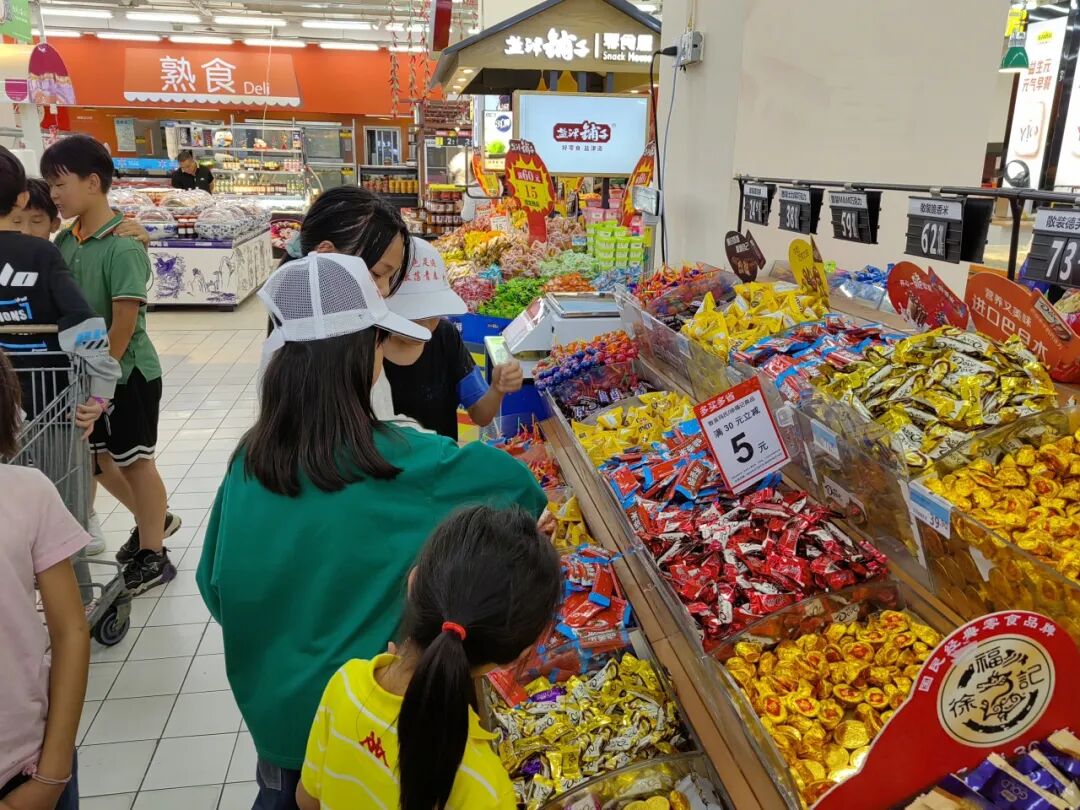 一组的小朋友们一进入超市,面对琳琅满目的商品,孩子们不知不觉就被吸引了目光,糖果、饮料、果冻、饼干什么都想要,一部分孩子慢慢忘记了采购资金是有限的。