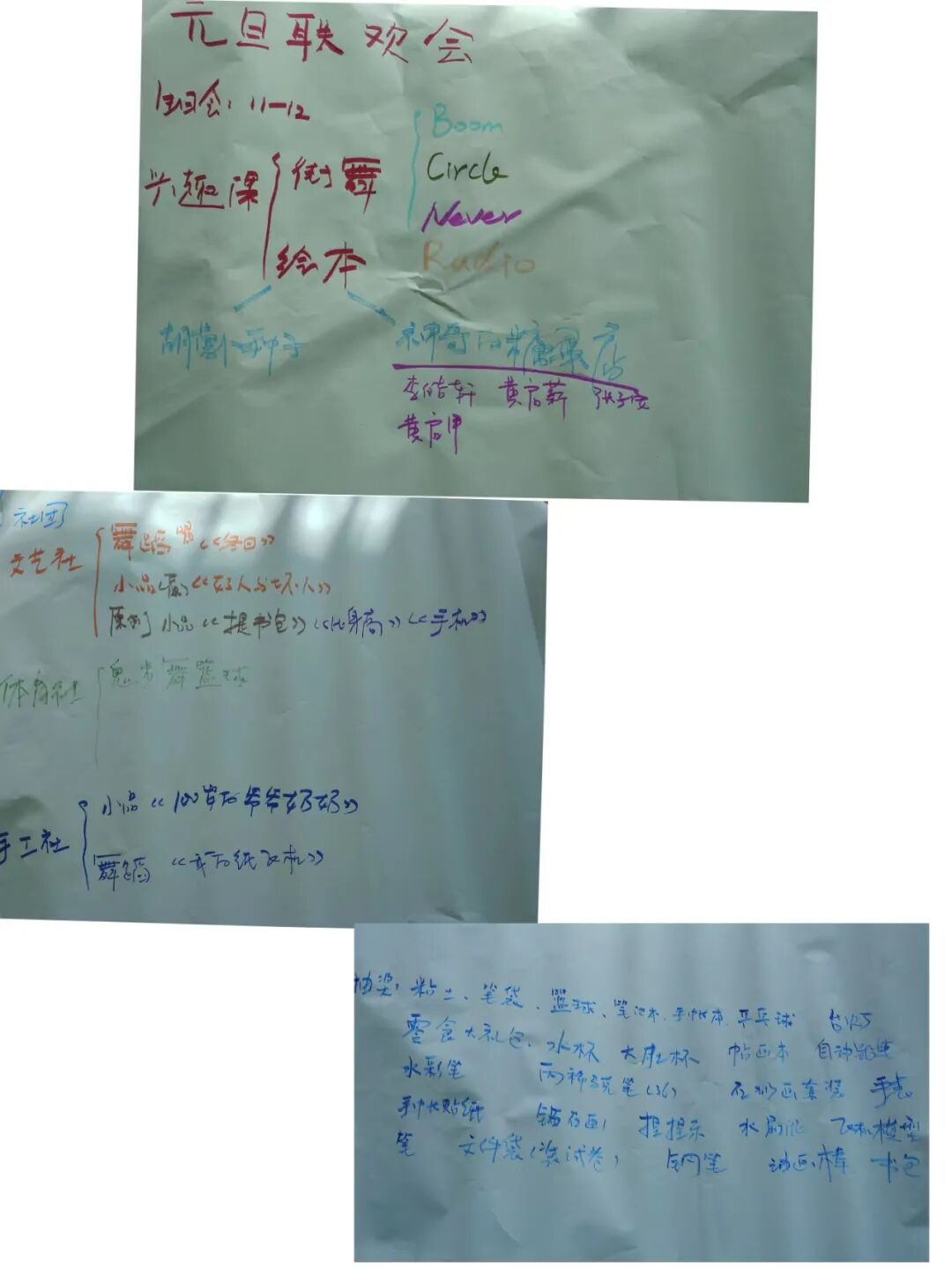 周日下午,我们带领小朋友们进行了联欢会活动内容讨论,小朋友们以社团形式分组讨论各自社团要表演的节目。文艺社、体育社、手工社三个社团都有社团集体表演节目,除了社团集体节目以外,我们小朋友也有个人才艺展示,节目丰富多样。