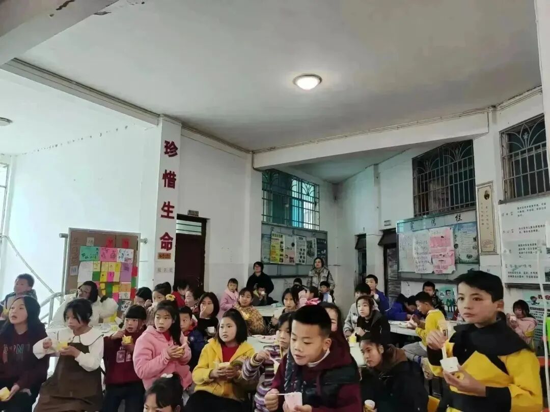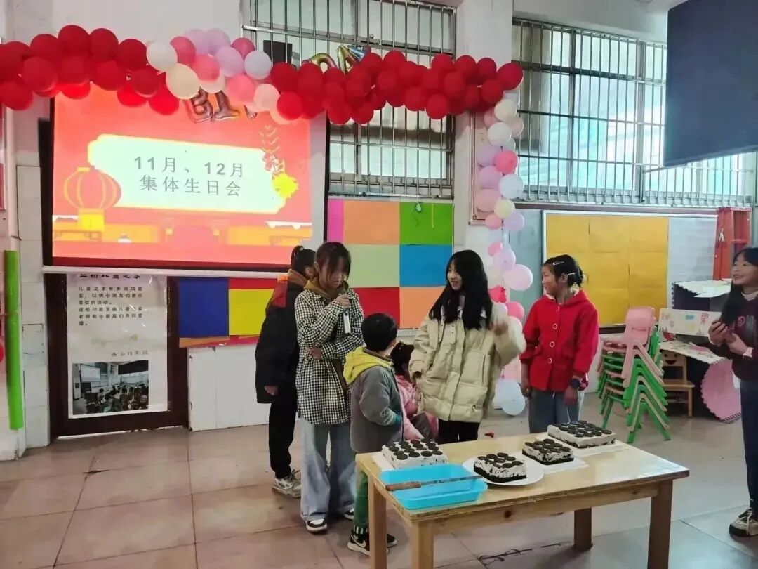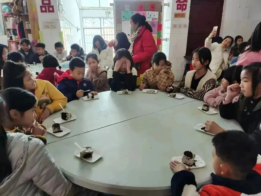我们的元旦联欢会有表演、有游戏,也有生日会。生日会也是美食品尝时间,小朋友们吃着美食,看着视频共同回顾一起走过的2023年。