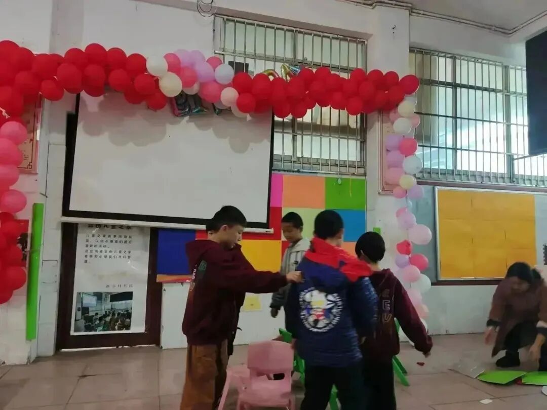 搬桌子、搬椅子、装饰墙面,每个人都有要干的活,大家都在儿童之家闪闪发光。