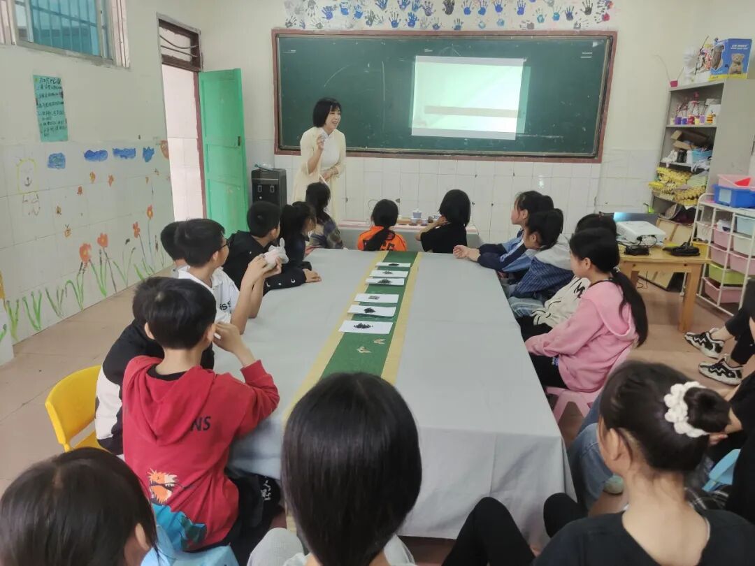 甘老师先从一片茶叶的缘起到茶具的变化发展再到品茶文化的与时俱进,由浅入深一步步带领小朋友们学习感受源远流长的中国茶。小朋友们沉浸在茶文化知识的海洋里,也被甘老师的优雅折服。