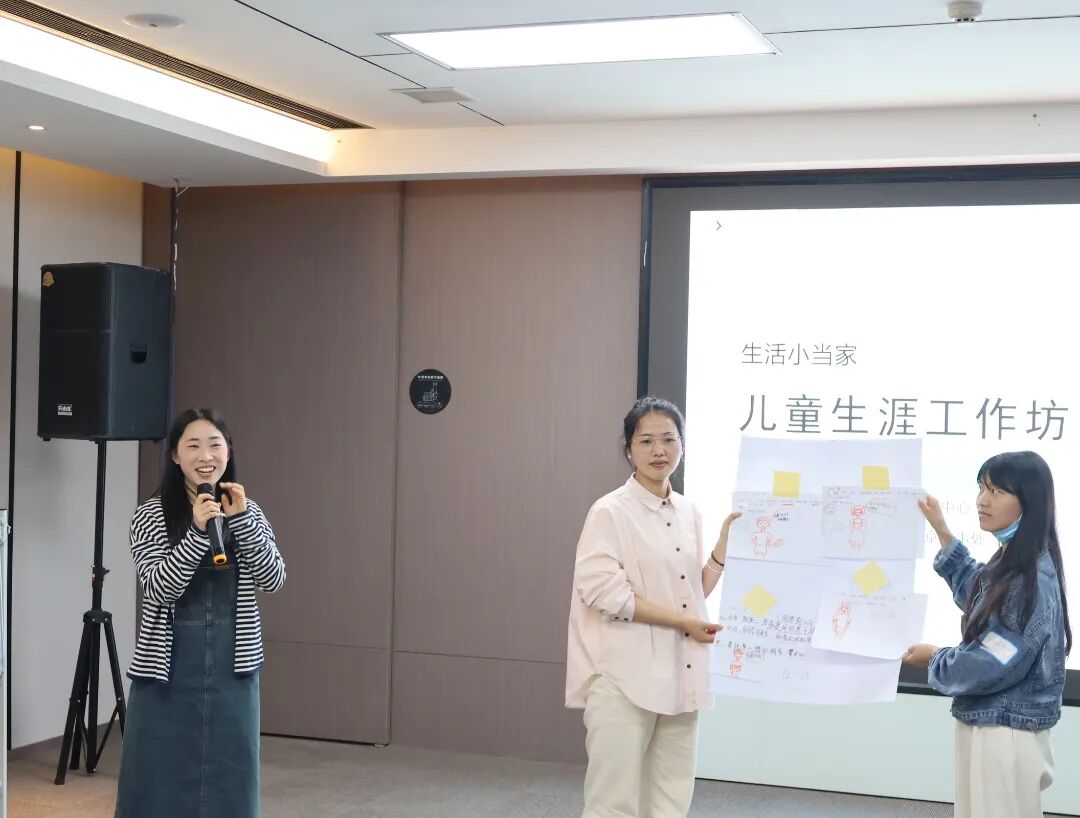 在老师的引导下,伙伴们开始盘点我们有什么资源?可以开展什么服务?我们在儿童生涯方面做过什么?基于服务对象的特点,我们到底在回应什么问题?在我们的工作中能做怎样的改变?可以怎么去支持。大家共同探讨方案的可行性,如何把设计做到符合儿童需求和兴趣,做到儿童心里去。
