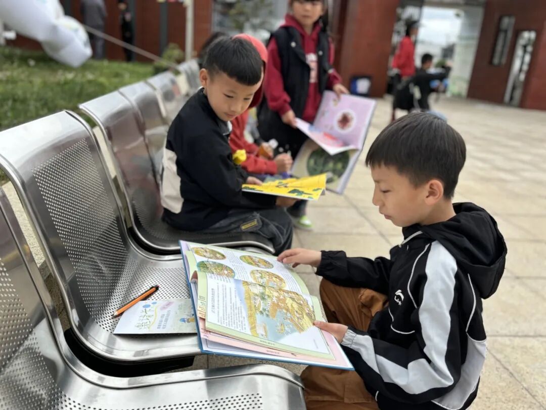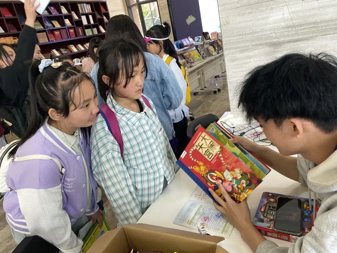 还有好多有趣的铺子,小朋友们都一一去闯关完成任务。很快十个章就集齐了,邀请卡上都是他们的战绩。大家又回到加油站去领取心仪的图书,绘本、故事书......选择困难症犯了,经过一番纠结,小朋友们还是将手伸向了最喜欢的绘本。