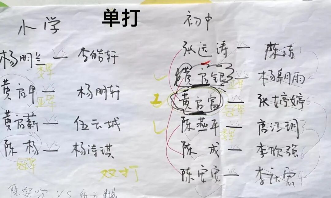 比赛前期,初中组的小朋友们自己查阅比赛规则,计分规则、单打规则、双打规则等。