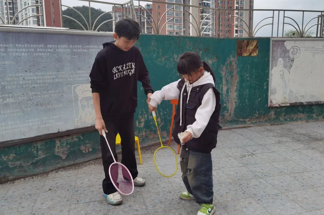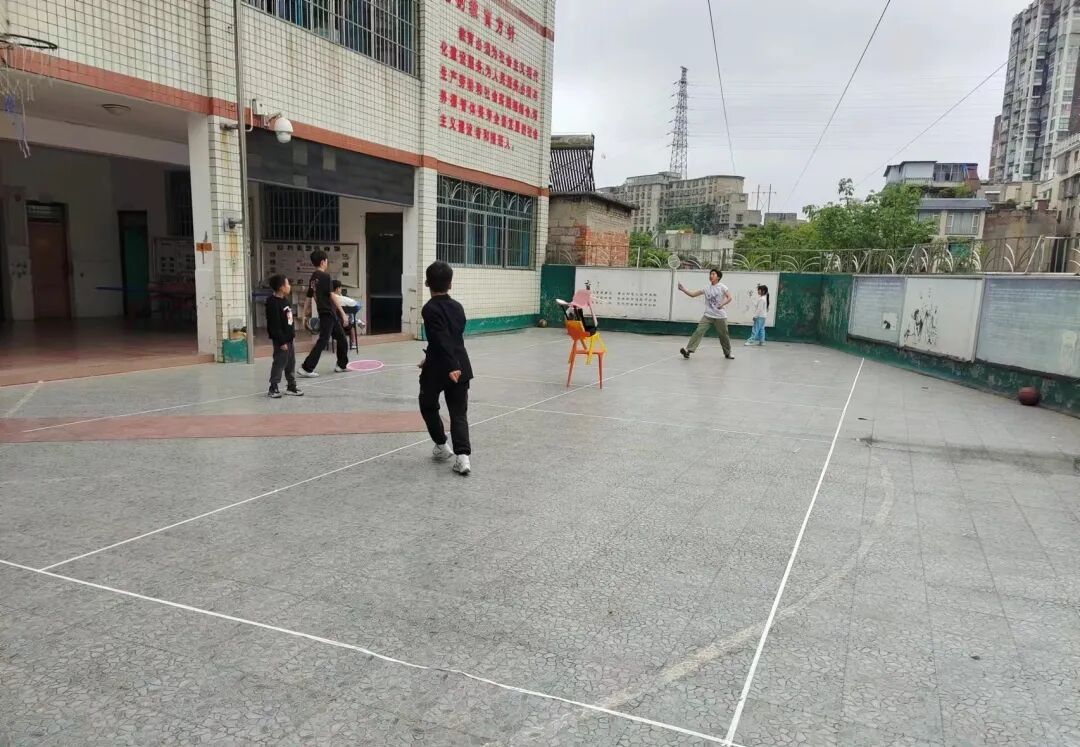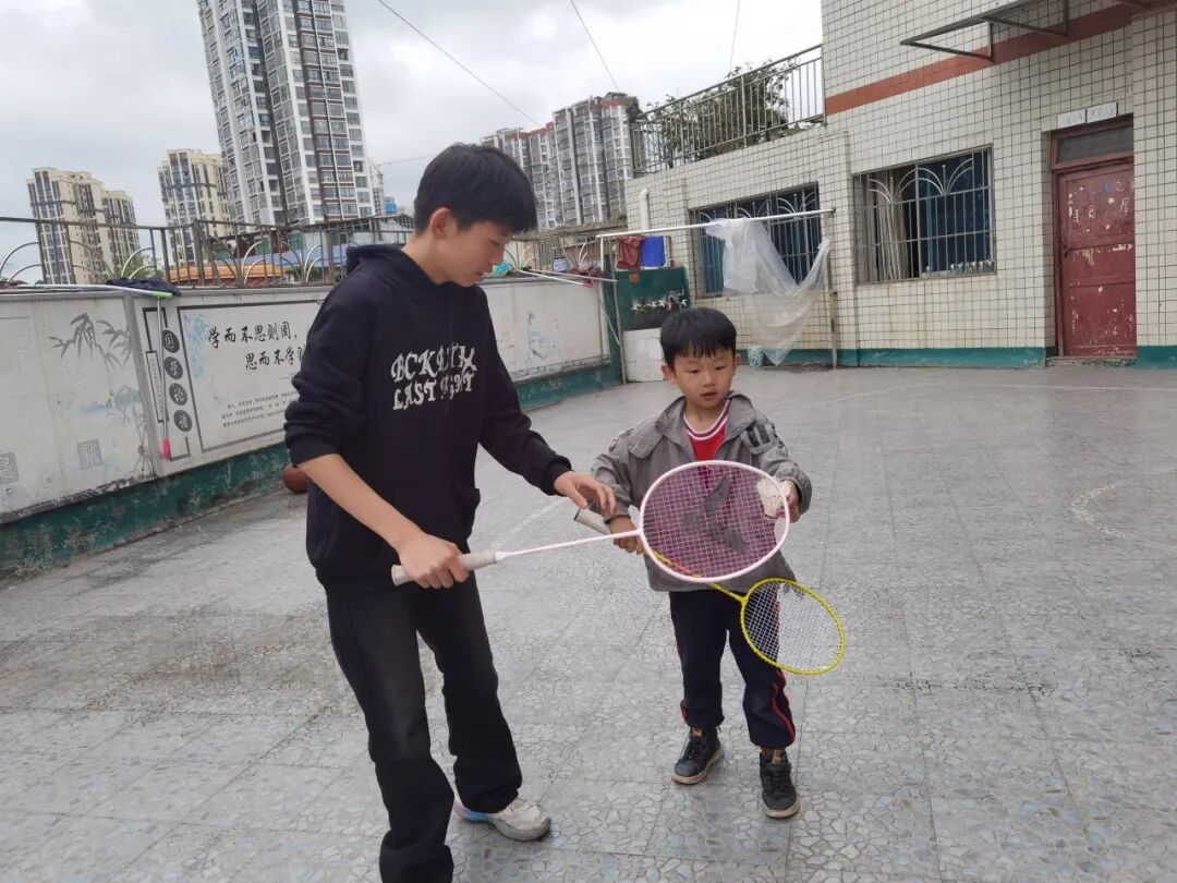 高年级的大朋友们便主动请缨作为小朋友的小教练,每天帮助小朋友们练习发球、接球等等。