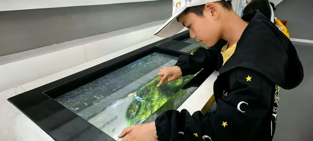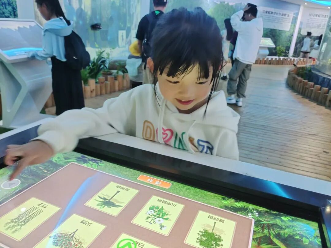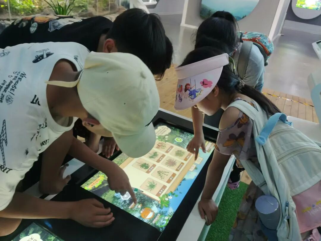 植物组进入馆内,大家马上跑到能点点点的触摸屏前,差点把任务忘在一边。但幸好组内还有记着任务的小朋友,赶紧进行分组,一组找答案,一组找问题。