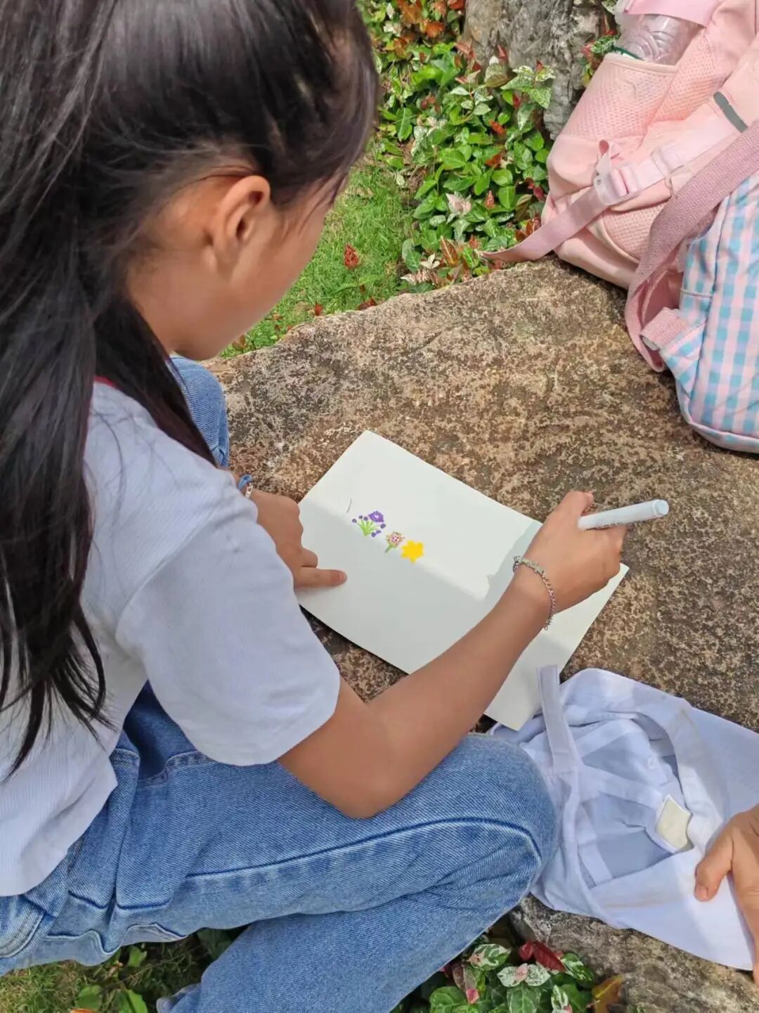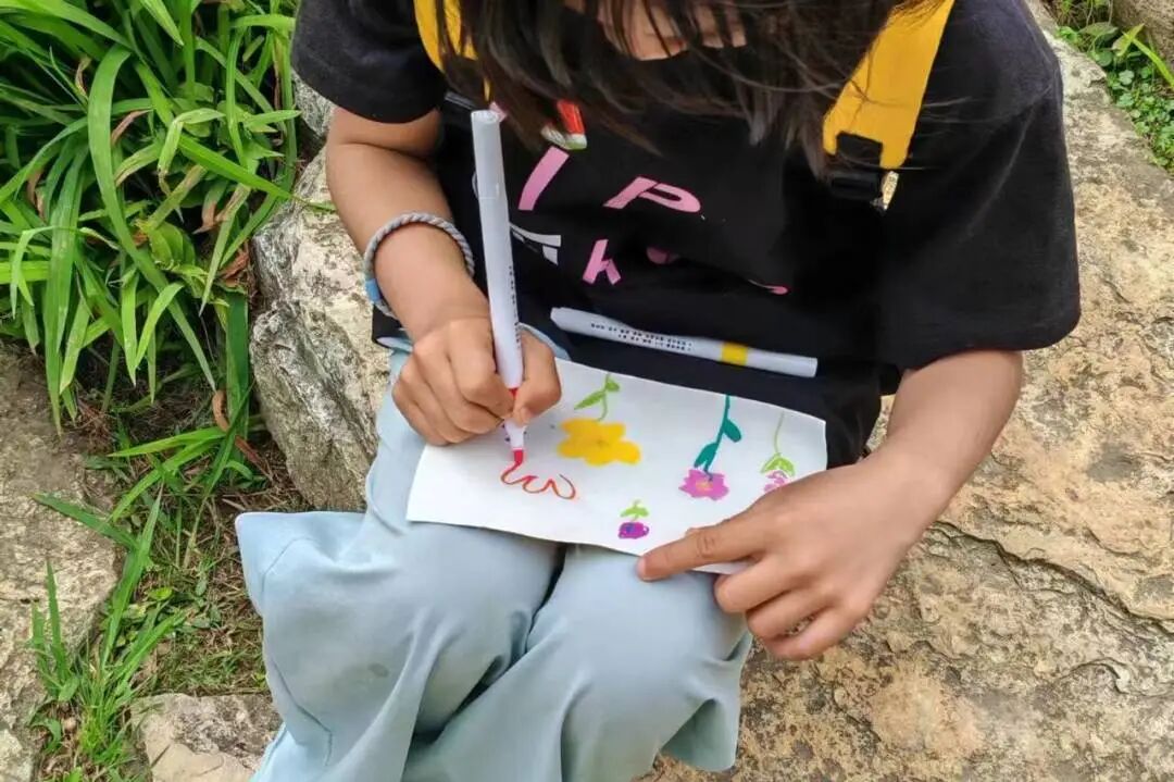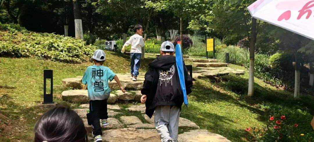 在去的路上看见了许多颜色各异的花、灵动可爱的鱼和初生的蘑菇,小朋友们在寻找颜色的同时,也积极地体验自然,沉浸于自然。