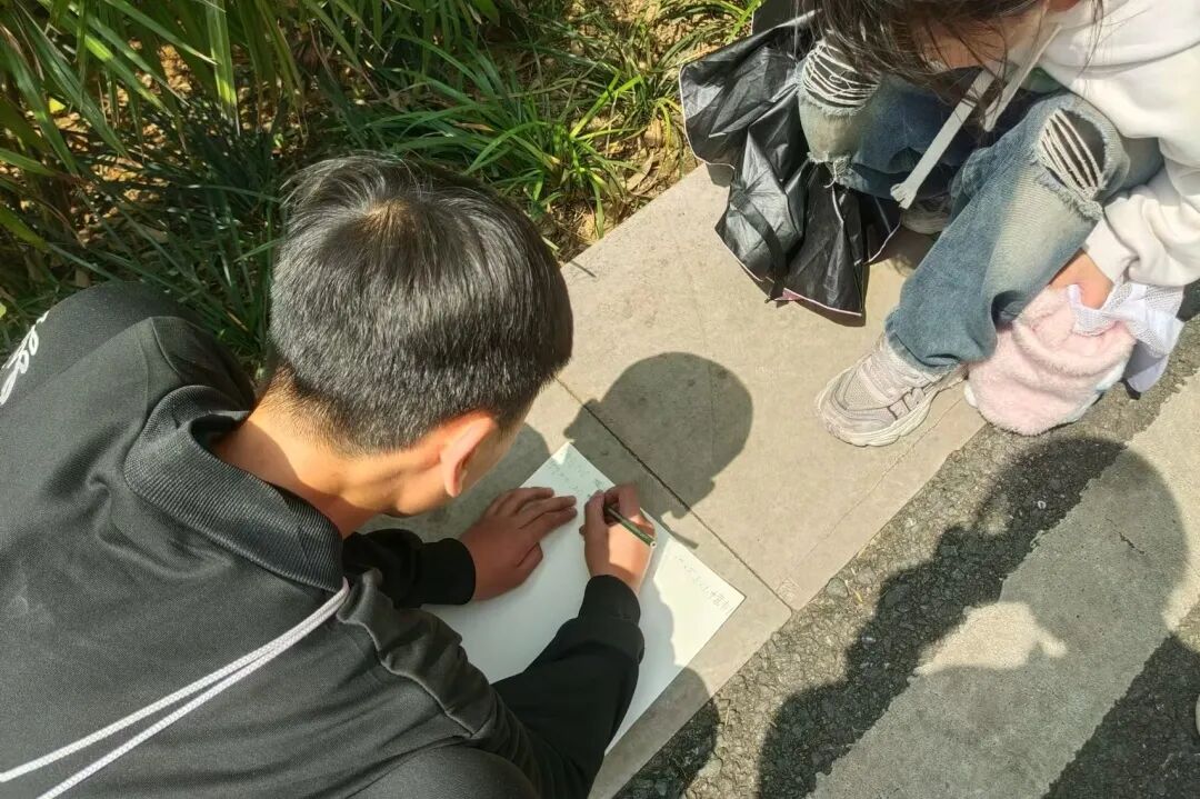 由两位初中组大哥哥带领,我们探索了公园里的植物,一路上大家走走记记,认识了很多植物,例如千头柏、石榴树、睡莲等,不认识的植物我们也拍照记下,回去继续学习。