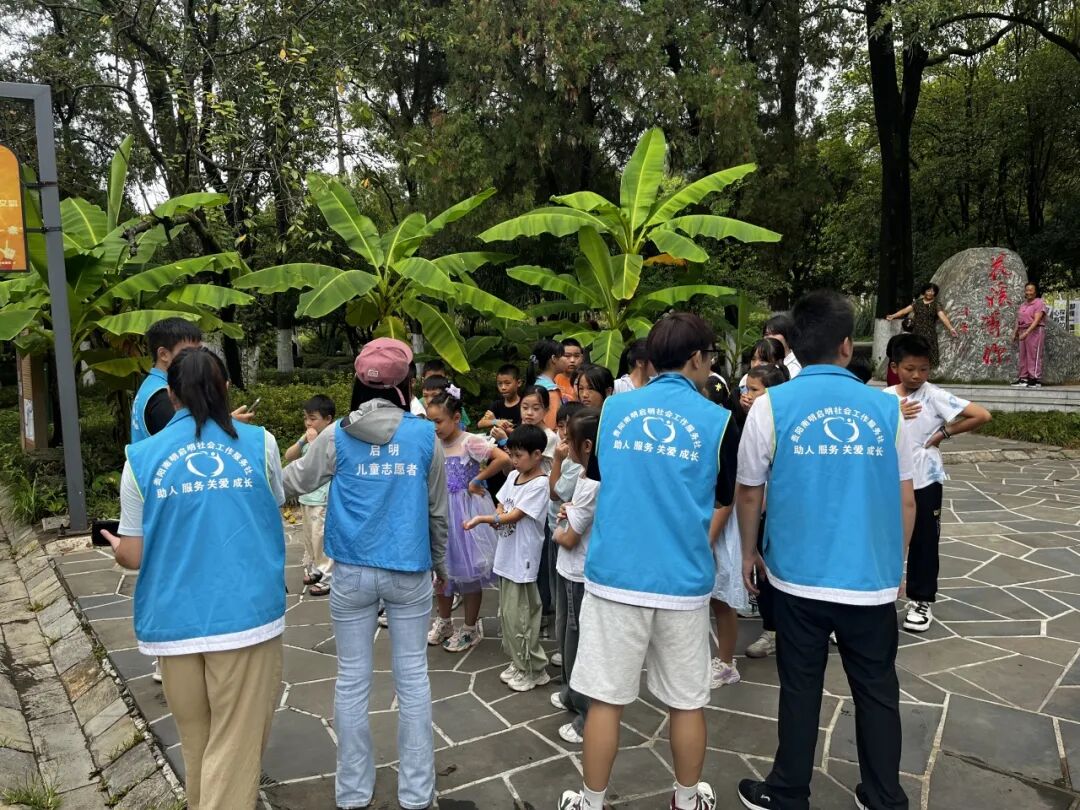 抵达花溪公园,一场别开生面的寻宝之旅正式拉开序幕。社工简短介绍了活动的目的,流程和安全注意事项等。随后带领小朋友们做热身运动,他们开心地挥动着手臂,欢快地迈开双腿,一会儿就完成了热身。社工们巧妙地将游戏线索藏匿于公园的每个角落,仿佛是大自然本身也在悄悄诉说着秘密。小朋友们瞬间化身为小小侦探,他们手牵手,眼观六路,耳听八方,在绿意盎然的林间小道、五彩斑斓的花丛间穿梭,每找到一个宝藏信封,都伴随着一阵欢呼,那份纯真的喜悦仿佛能感染在场的每一个人。