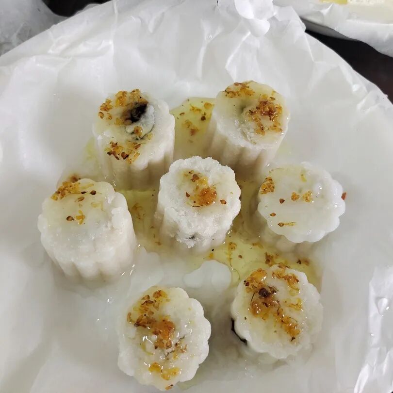 经过一个多小时的面粉过筛大战,所有的重阳糕终于上锅蒸制了。伴随着蒸腾的热气,四十分钟之后,冒着米香、松软可口的重阳糕出锅了。