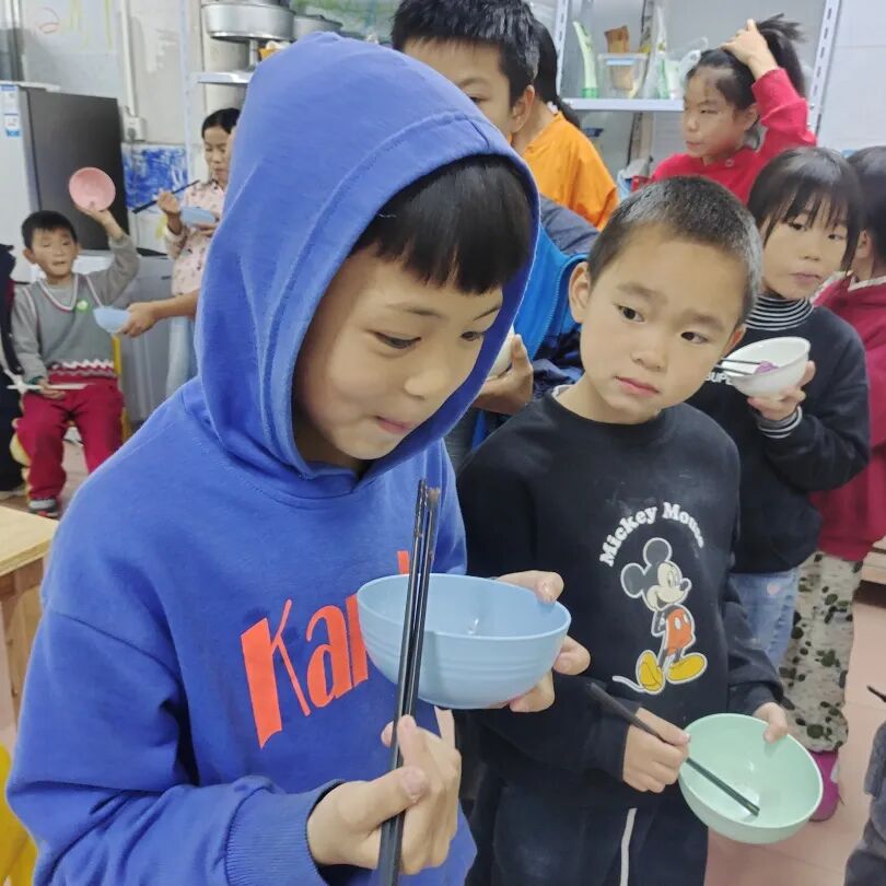 小朋友们拿着碗,排着队,想品尝的心已经按捺不住了。个个迫不及待,催促老师快点分,每种口味的重阳糕都大获好评。