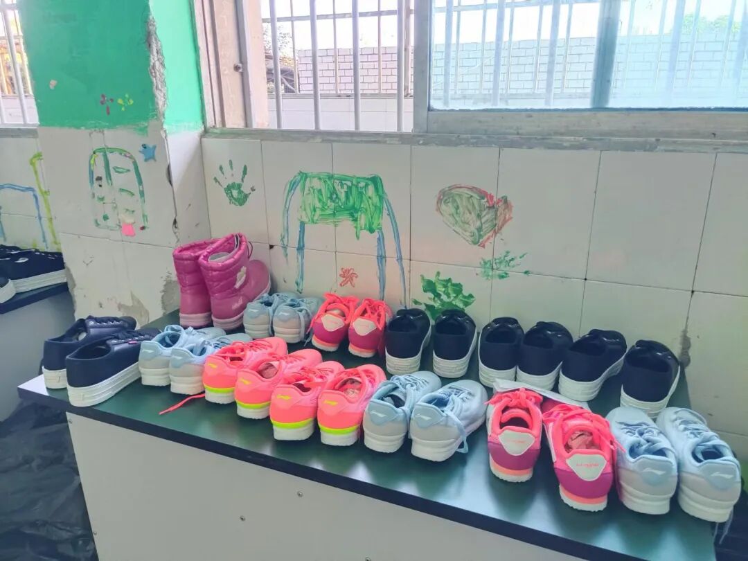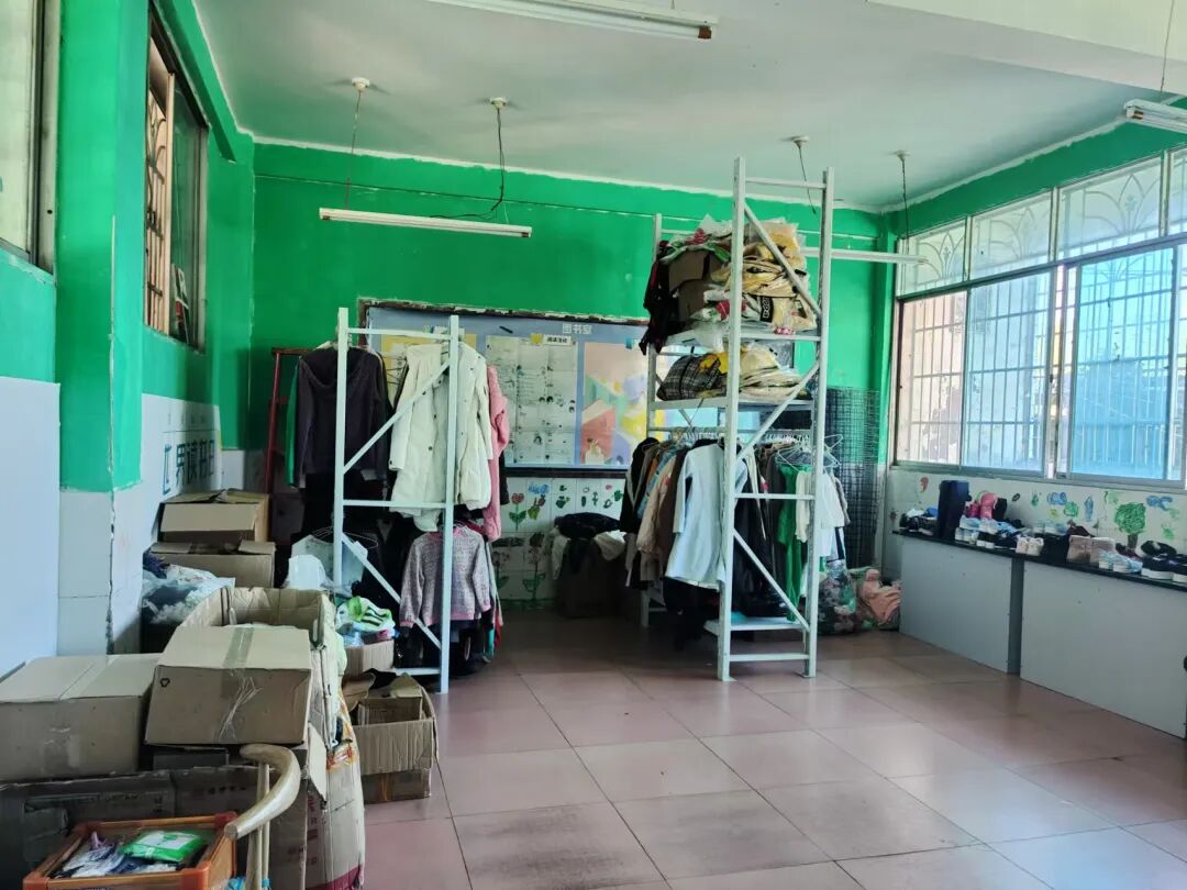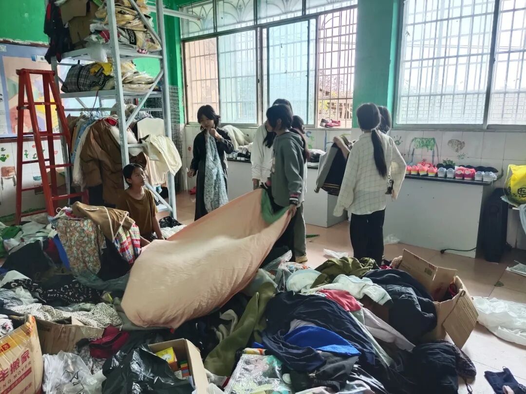 大家相互协作,根据图书的颜色进行分类上架,衣物逐一套上衣架挂起来,鞋子摆放在一起,大致有了雏形。