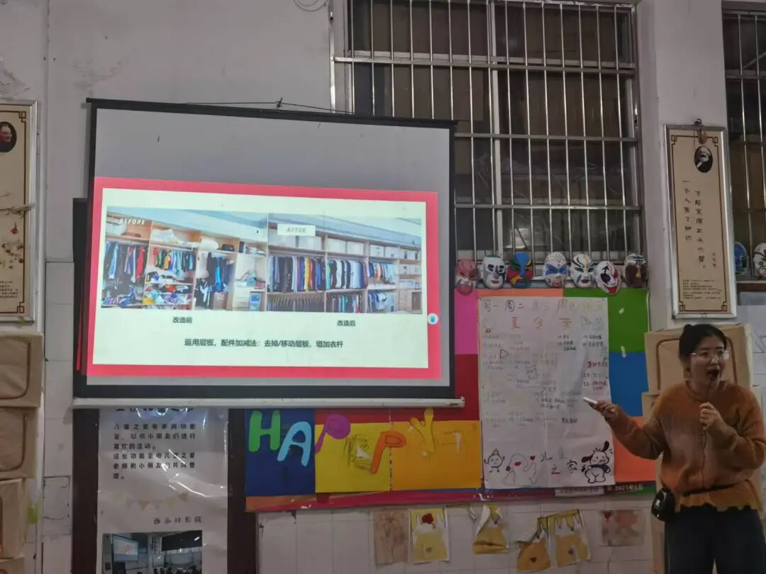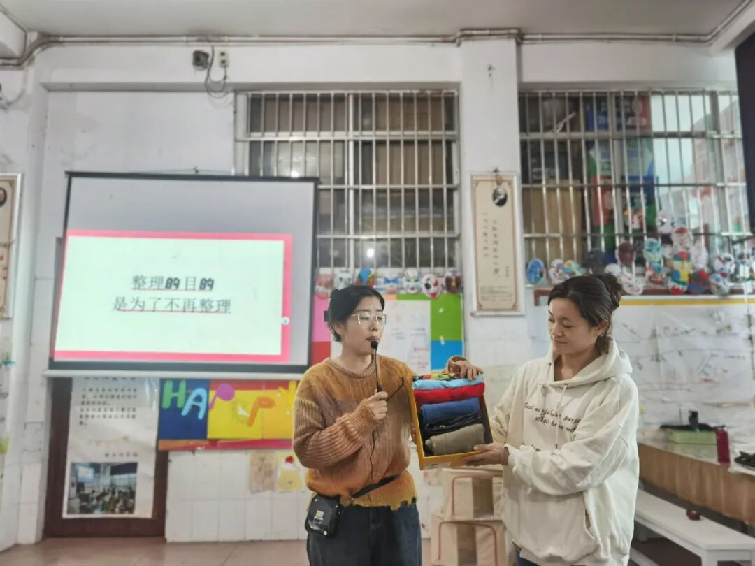 第一个方面是换季衣物怎么收纳,为小朋友们讲解了为什么家里看起来凌乱的原因。我们的家里凌乱,是因为物品都没有固定的“家”,换季的衣物也是如此。衣物都没有“家”,所以换下来我们不知道要放在哪里。要如何解决这个问题呢?只需合理利用空间,让衣物有它固定的“家”就可以了。鞋子放在鞋柜里,衣服能挂起来的就不叠着放,按类别将衣服分类放好。这样每件衣物都有自己的家,便于我们拿取也能避免重复购买样式相同的衣服。