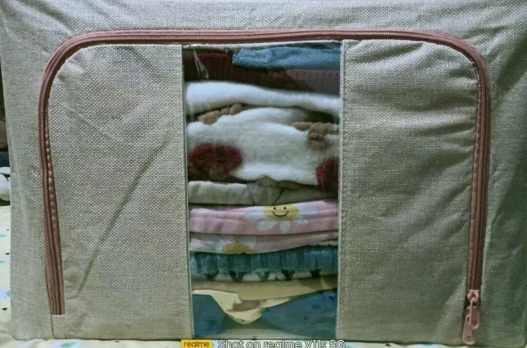 除了鞋盒,我们也可以利用百纳箱进行收纳。采用“横式收纳法”,将我们的衣物叠好放进百纳箱里,每件衣物叠放整齐,一个小小的百纳箱可收纳20-30件衣物。