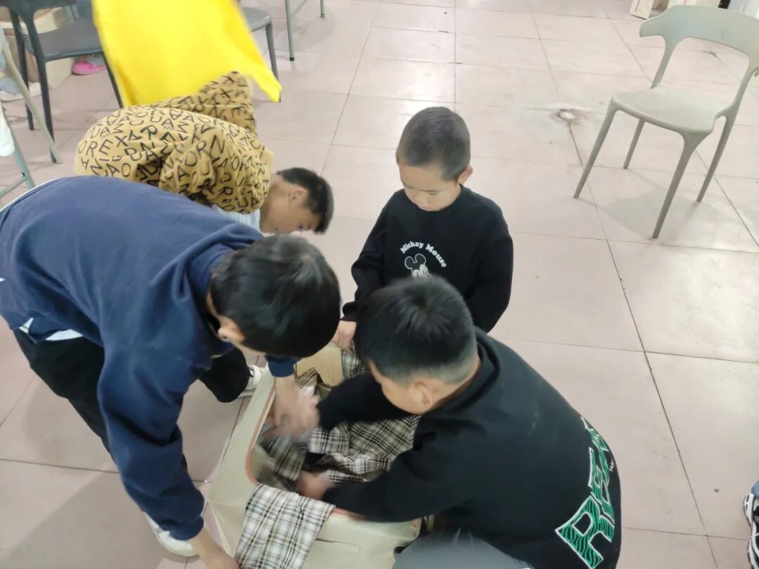 几件衣物怎么可能满足小朋友们呢,最后,儿童之家变成了他们实践的战场。