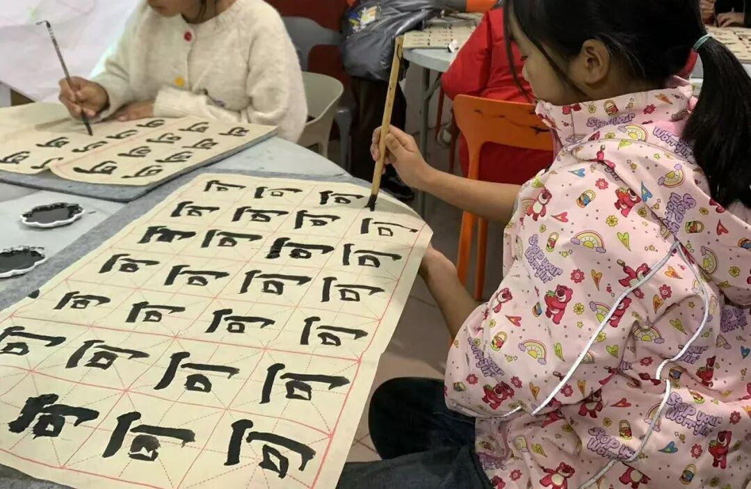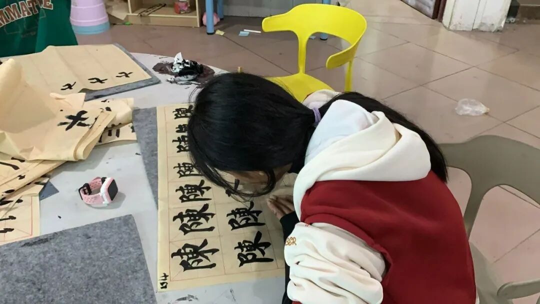 顾老师对于小朋友们的提问都一一回应,耐心教授小朋友们正确的拿笔方式与书写姿势,帮助他们找到正确进入书法世界的通道。小朋友们从横、竖、撇、捺等基本笔画入手,反复练习,直至掌握每个笔画的正确书写方法和力度。在掌握了一定基础后,小朋友们想要进行自由创作,将所学的书法技巧融入其中,展现自己的个性和风采。小朋友们在顾老师的指导下渐入佳境,一次比一次的状态更好,也更加耐心地书写。