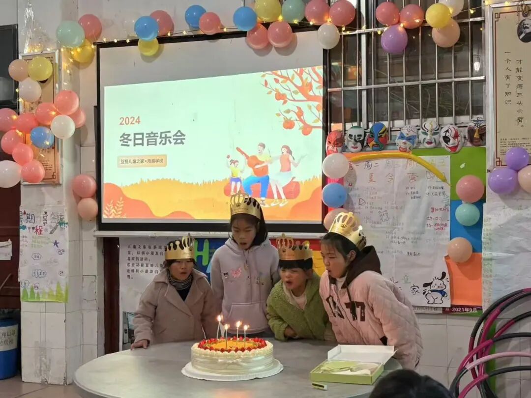 游戏之后,本次的活动迎来了高潮——集体生日会。亚桥儿童之家的小朋友开心地邀请海嘉学校的小朋友一起为我们本次的四位小寿星过生日。戴寿星帽子、奏唱生日歌、许愿、吹蜡烛、吃蛋糕,整个音乐会现场温馨而欢乐。