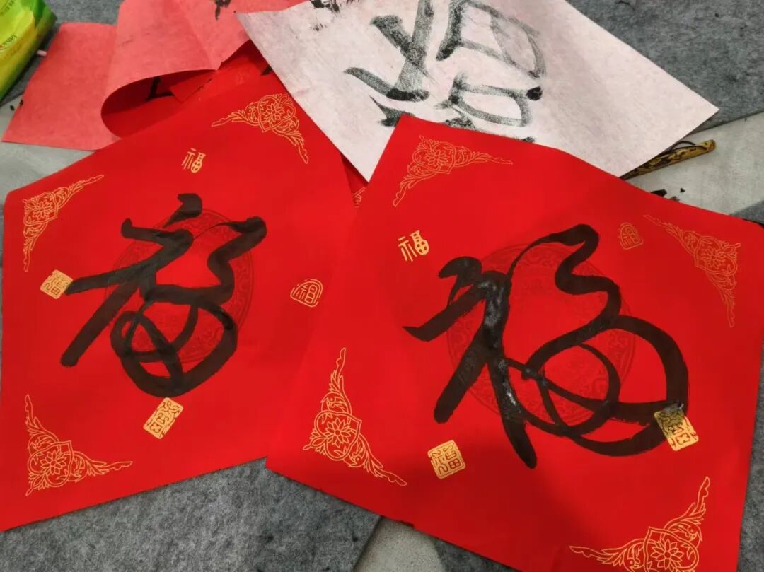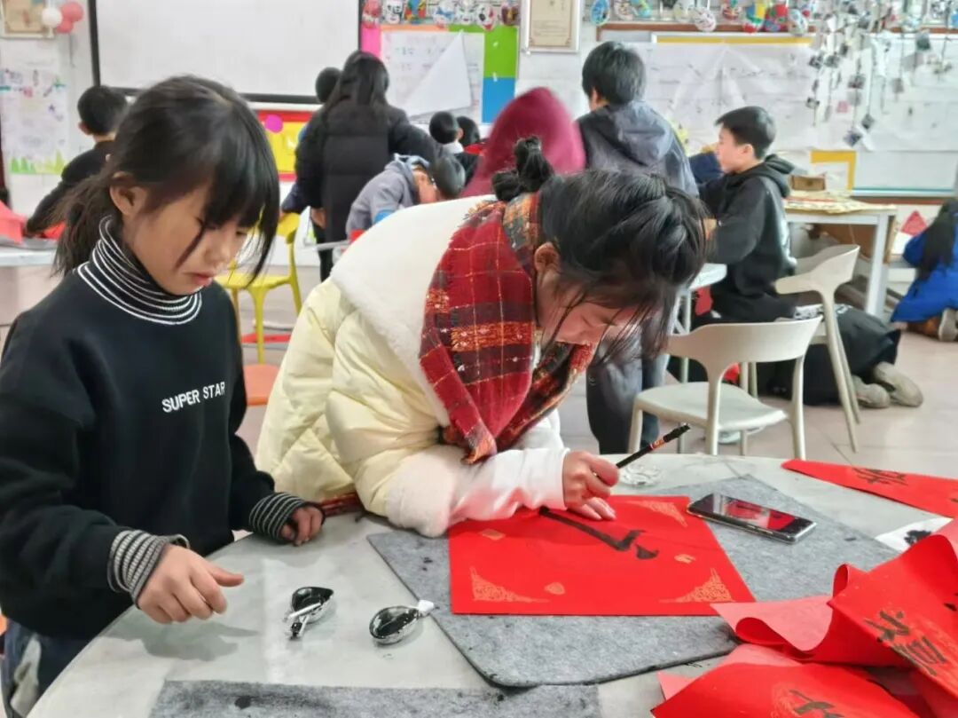 红纸上,他们的一笔一画,虽然稚嫩,但每一个字都充满了对新年的热爱和期待。