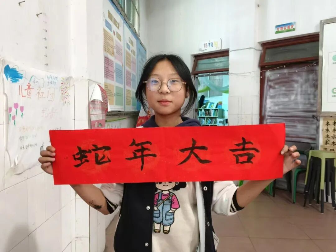 有的小朋友写下了“龙去蛇来”,寓意辞别了旧岁,迎接蛇年的美好愿景;有的则选择了“福满家园”,寄托了对家庭幸福和美满生活的向往;而有的则写下了“福”字,寓意福气满满。