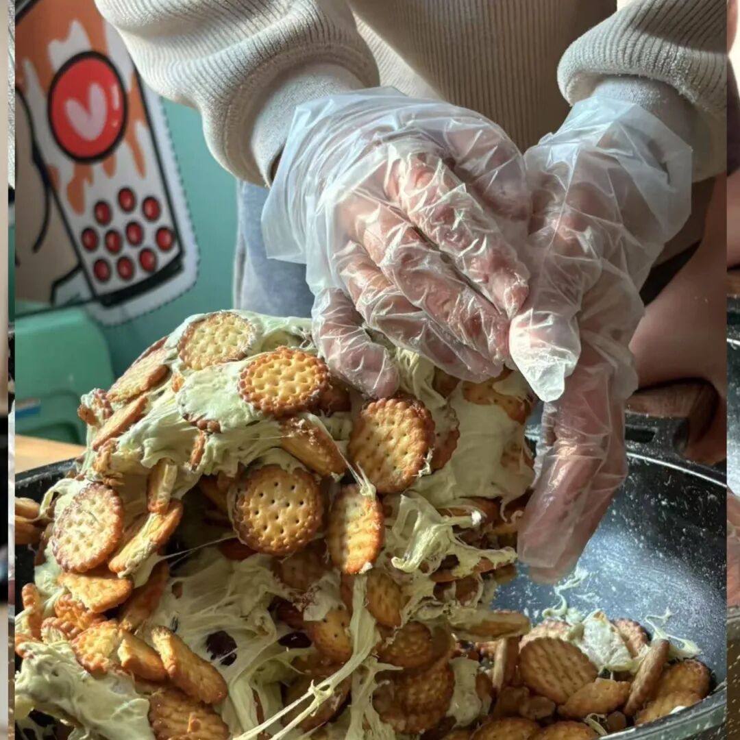 厨房里飘出了诱人的香味,是什么呢?原来是我们的“小小厨师”们,在提前准备好食材后,正热火朝天地制作新年美食——雪花酥!