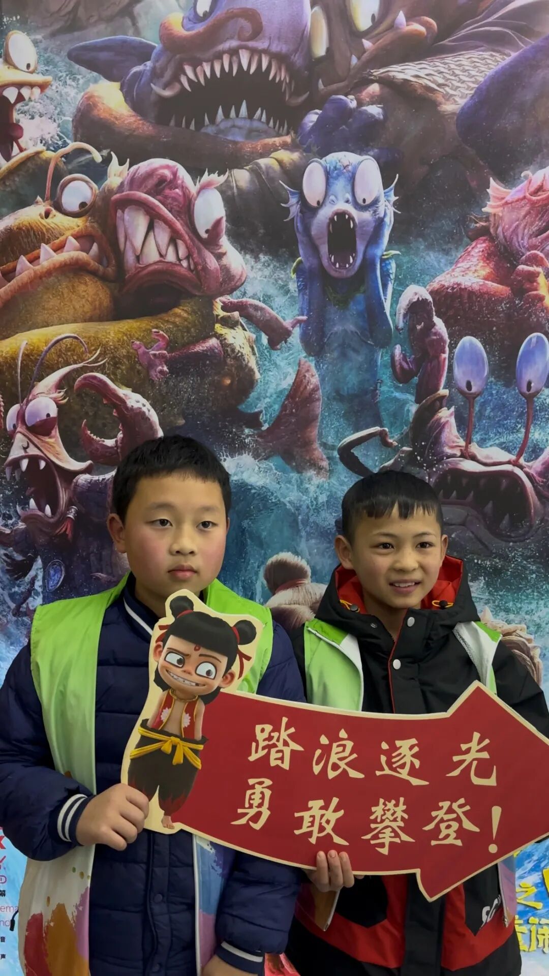 观影结束后,小朋友们意犹未尽地走出影厅,脸上洋溢着兴奋与满足的笑容。在老师的组织下,他们纷纷围在一起,迫不及待地分享起了自己的观影感受。“看到哪吒的父母那么爱他,我也想起了在外打工的爸爸妈妈,我要好好学习,不让他们担心。”“哪吒太酷啦!就像我们班的勇士,保护大家不受欺负。”“我也想像哪吒那样,勇敢地面对生活的困难,保护我在乎的人!”这场光影之约,让更多的随迁儿童走进影院,感受电影的魅力,也在他们心中洒下希望与勇敢的种子,引领他们向着更加积极向上、充满梦想的人生道路前行。