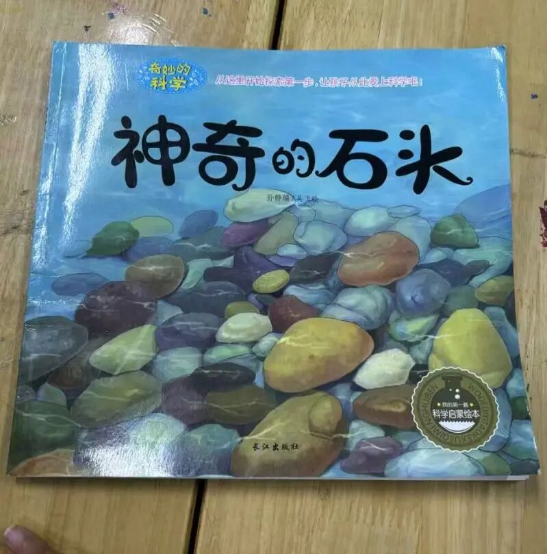 “这本书讲了山顶的大石头的巧妙经历。他从在山顶上一直晒太阳,到在不同的地方不断发挥它的作用,再到最后被母鸡吃到肚子里面去了。”