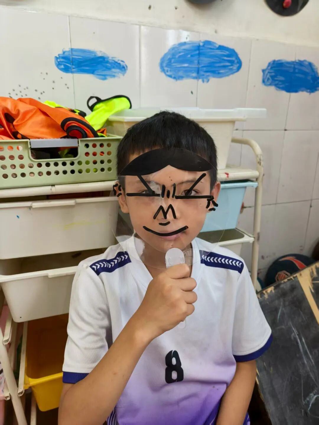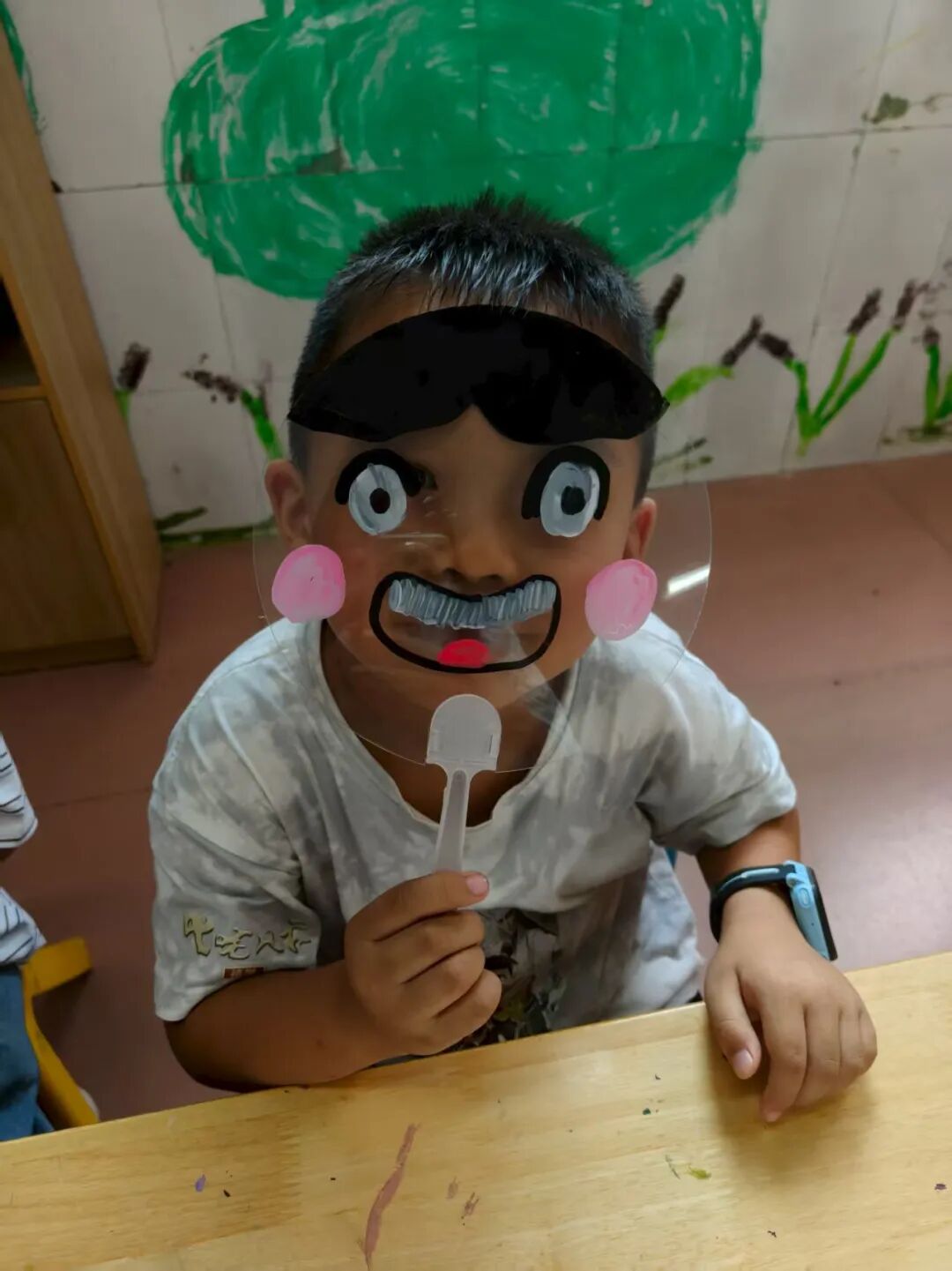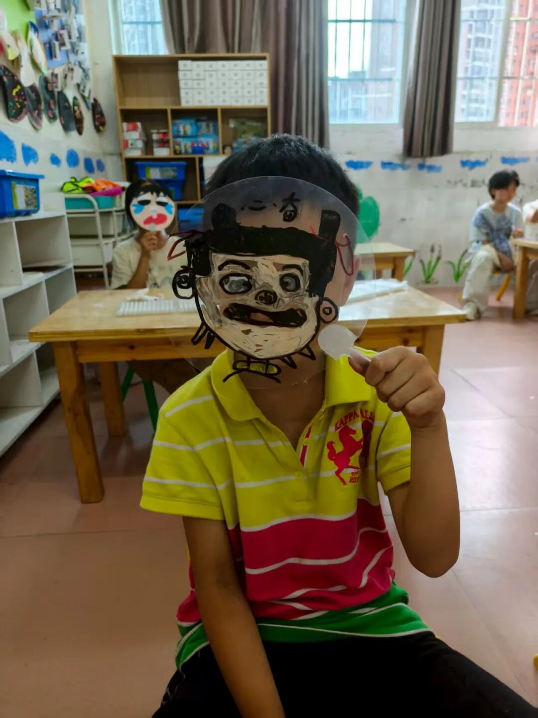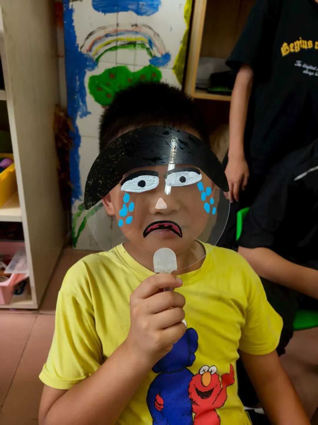 “如果用一幅画代表你的情绪,会是什么样子?” 我们准备了透明扇子、丙烯马克笔和贴纸,让孩子们化身“情绪小画家”。