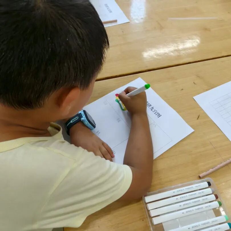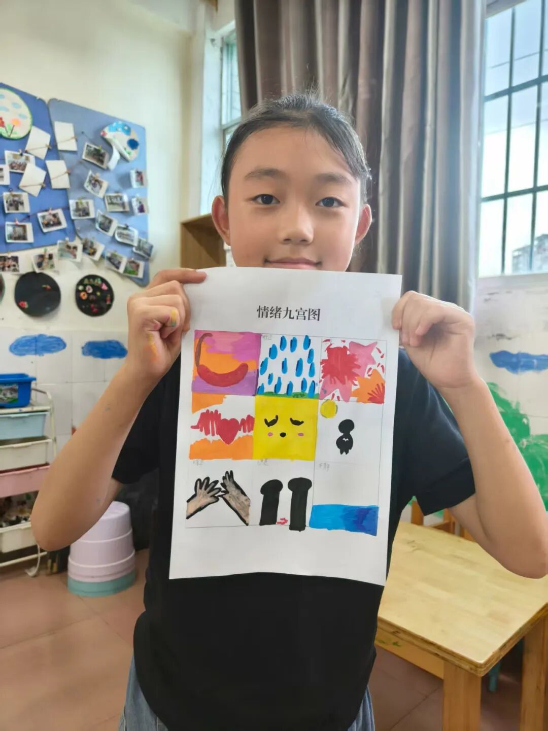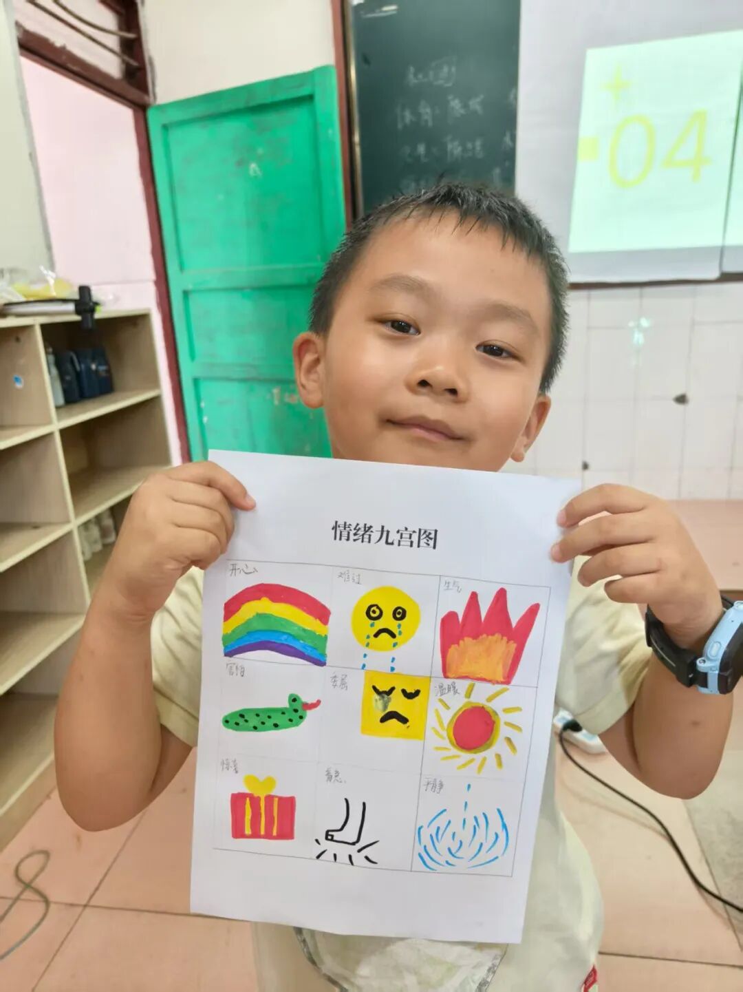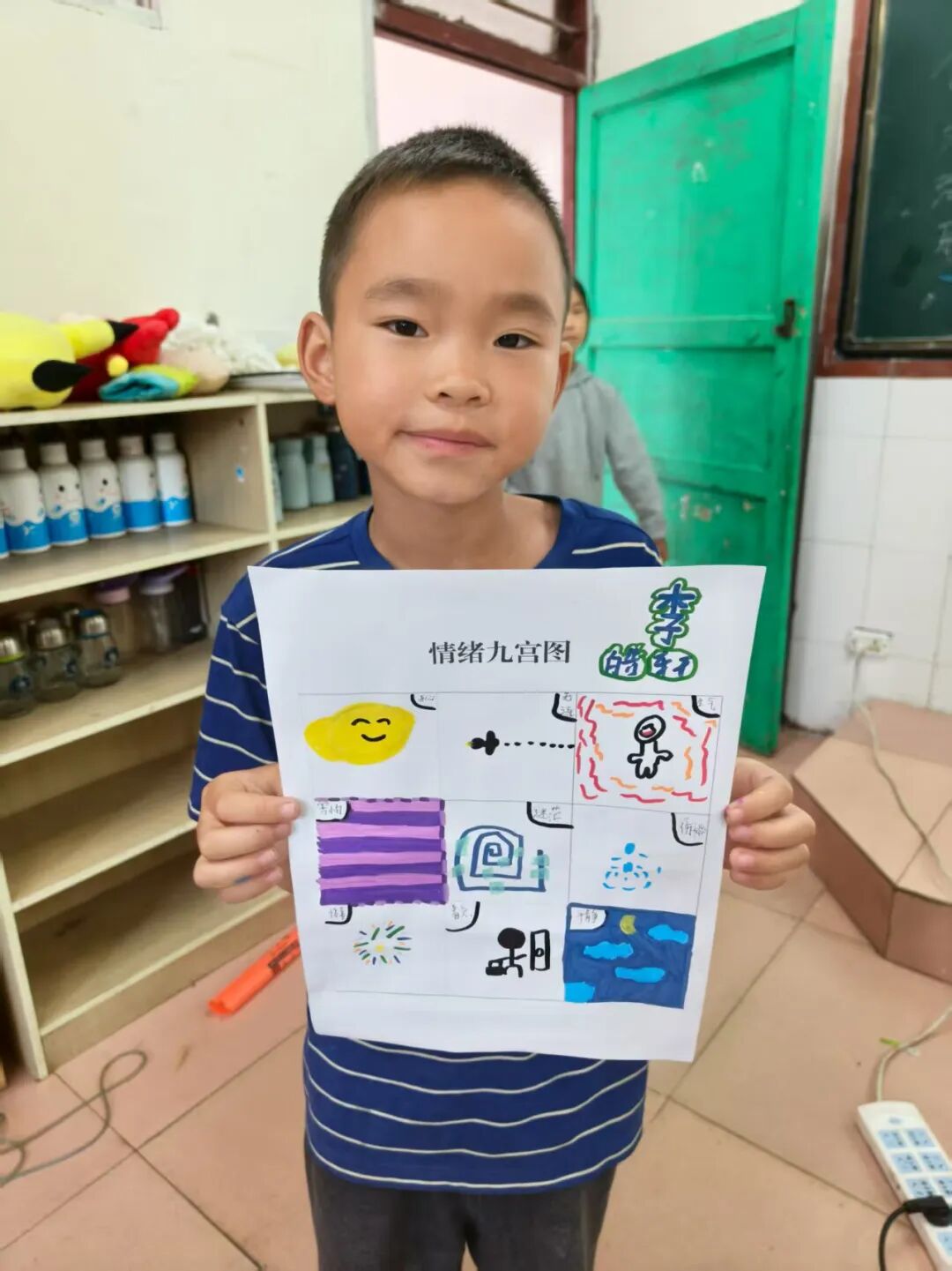 如果说 “说出来” 是情绪的直接传递,那 “画出来” 就是情绪的创意表达。当九宫格画纸和彩笔分到手中,孩子们立刻沉浸在色彩的世界里。