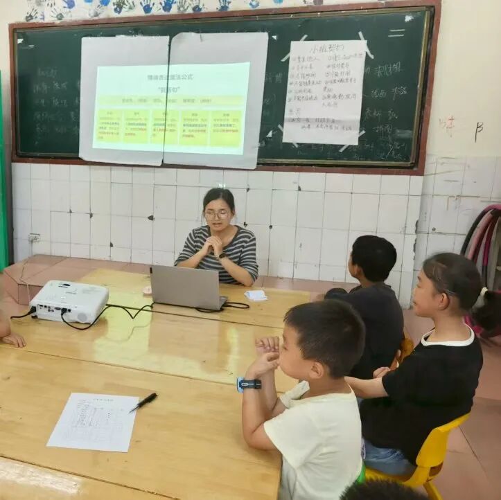 “我觉得 (情绪),因为 (原因),我希望 (期待)” 的公式一出现,孩子们就好奇地围了过来。