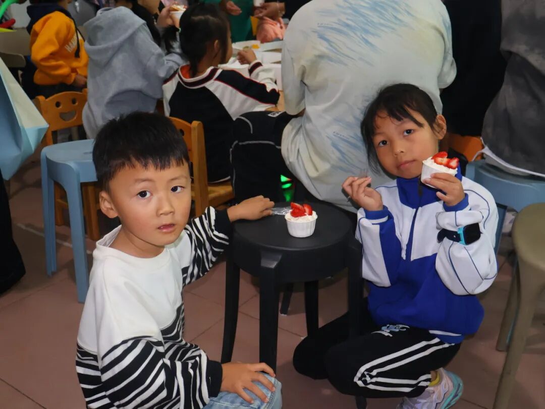 当香甜的蛋糕递到手中时,孩子们迫不及待地拿起小勺子品尝起来,奶油的香甜在口中散开,幸福的滋味涌上心头。