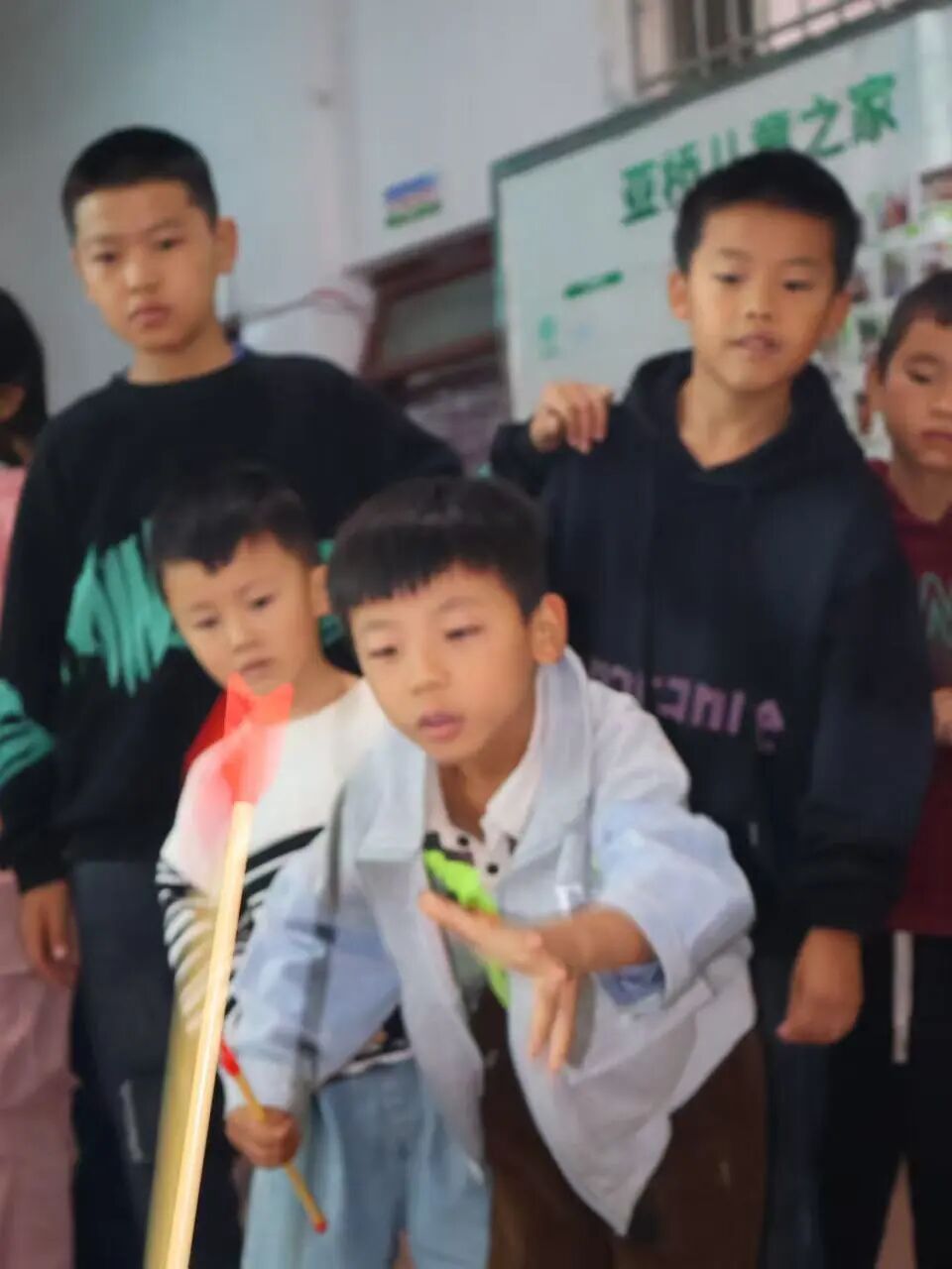 最后登场的 “寻宝大作战” 将游戏氛围推向高潮:活动前工作人员把儿童之家划分为图书室、厨房、活动室、大厅四个区域,在隐蔽处藏好幸运币。游戏开始后,小朋友分四队选 “小队长”,先通过日常相关问题抢答选寻宝区域;随后各队凭提示纸行动,队员分工搜索、记录、分析,各区域满是孩子们忙碌的欢乐身影。
