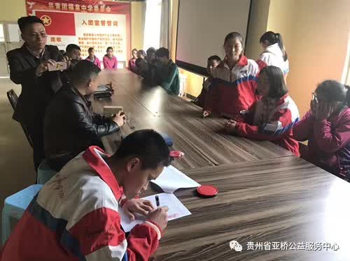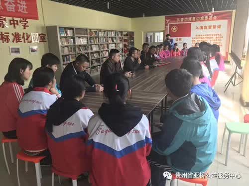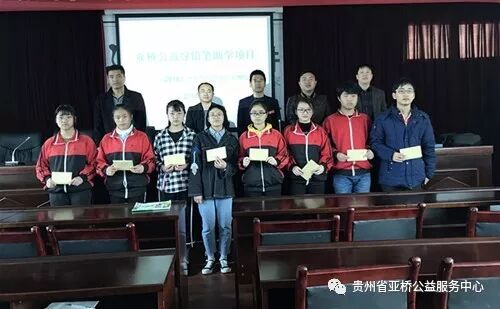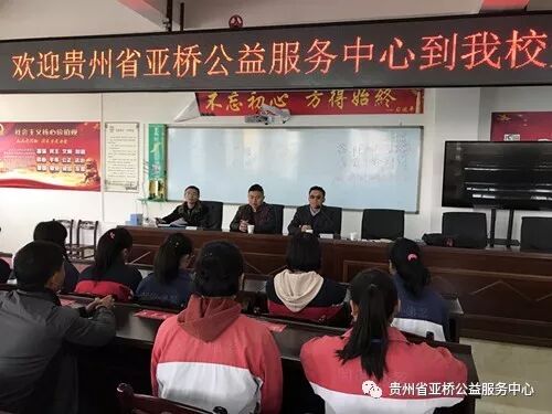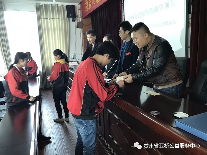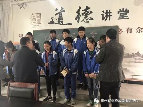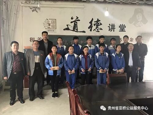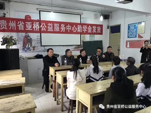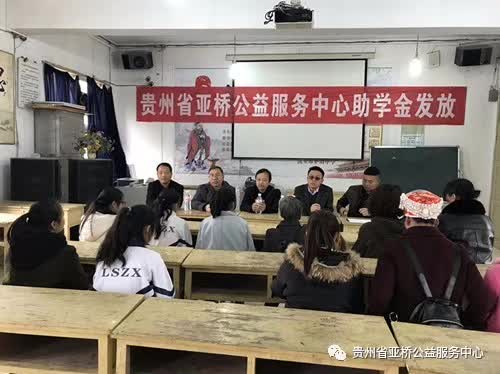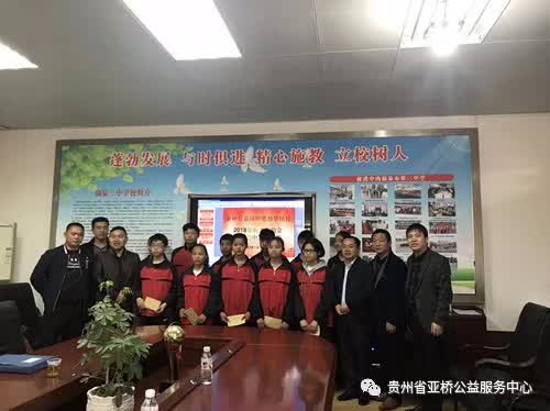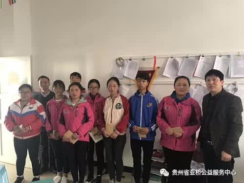 2018年3月21日亚桥公益项目执行团队在凯里市民宗局张科长、当地志愿者刘显军及爱心小组一行来到凯里市炉山镇炉山中学为8名高中生,5名初中生送去本学期的助学金及开展交流活动。