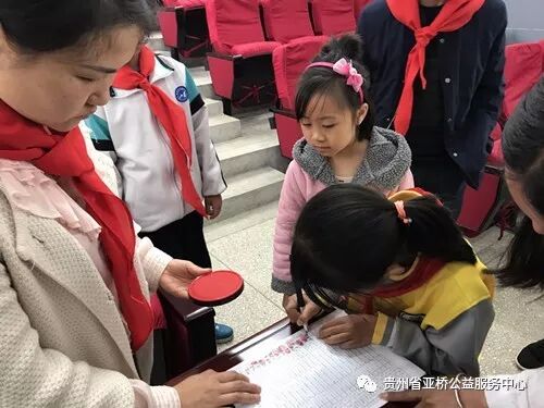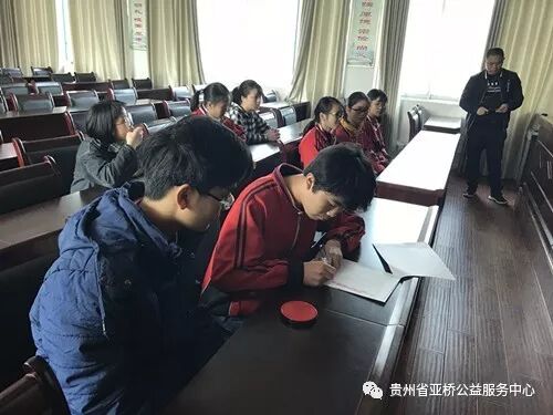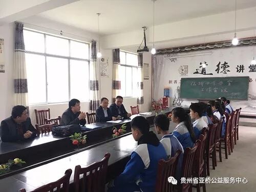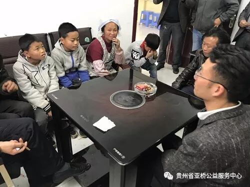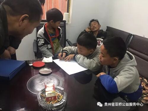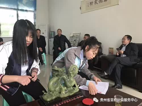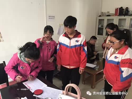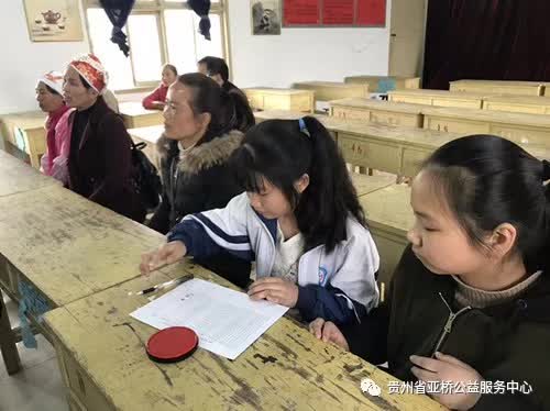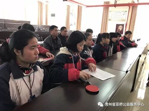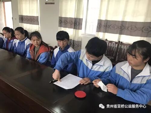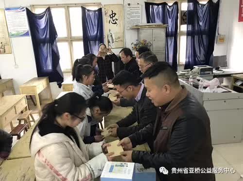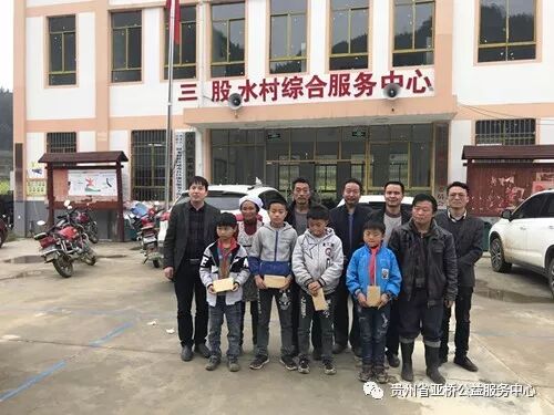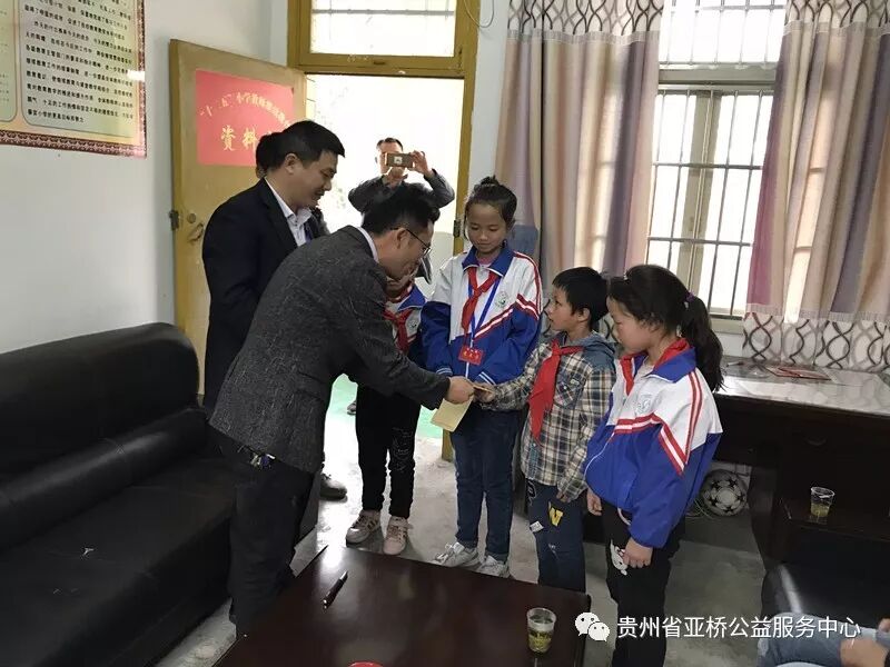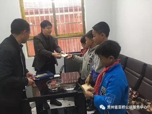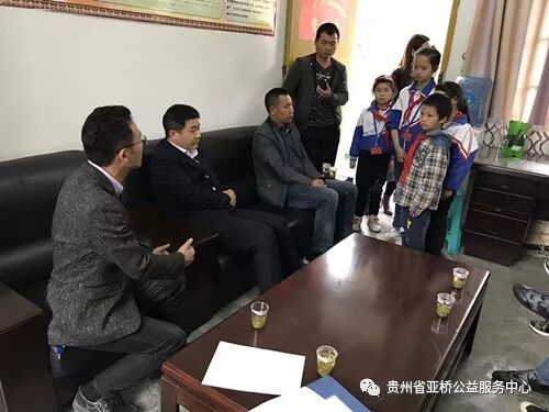 2018年3月27日亚桥公益项目执行团队来到安顺市西秀区岩腊乡三股水村村委办公室为7名特困家庭的孩子送去本学期的助学金及开展交流活动。